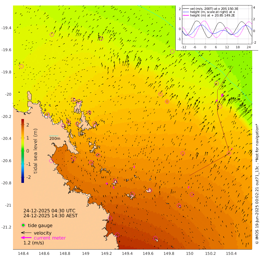 27cm/s -21T +10cm/s rms + 2cm/s 5T. Brampton I 18m 25cm/s -4T +9cm/s rms + 6cm/s 66T. Wigton I 38m 24cm/s 26T +7cm/s rms + 8cm/s 141T. Tern I 47m 42cm/s 29T +7cm/s rms + 12cm/s 54T. N Bugatti Rf 64m 37cm/s 32T +3cm/s rms + 13cm/s 178T. W Bugatti Rf 70m 18cm/s 35T +3cm/s rms + 3cm/s -130T. Creal Rf 69m 84cm Holbourne I 166cm Tern I 92cm Bugatti Rf 122cm Creal Rf 69cm White Tip I 76cm Wallaby Reef 64cm Kennedy Reef 50cm Unnamed Reef No. 2 115cm Tideway Reef 105cm Hayman Island 146cm Square Reef 103cm Double Bay 143cm Molle Island 127cm Cid Harbour 107cm Hook Island 126cm Border Island 128cm Haslewood Island 127cm Shute Harbour 152cm Thomas Island 154cm Credlin Reef 164cm East Repulse Island 167cm Blacksmith Island 182cm Laguna Quays 168cm Carlisle Island (Off) 173cm St. Bees Island 164cm Scawfell Island 184cm Penrith Island 200cm Mackay Outer Harbour 208cm Hay Point 199cm Prudhoe Island