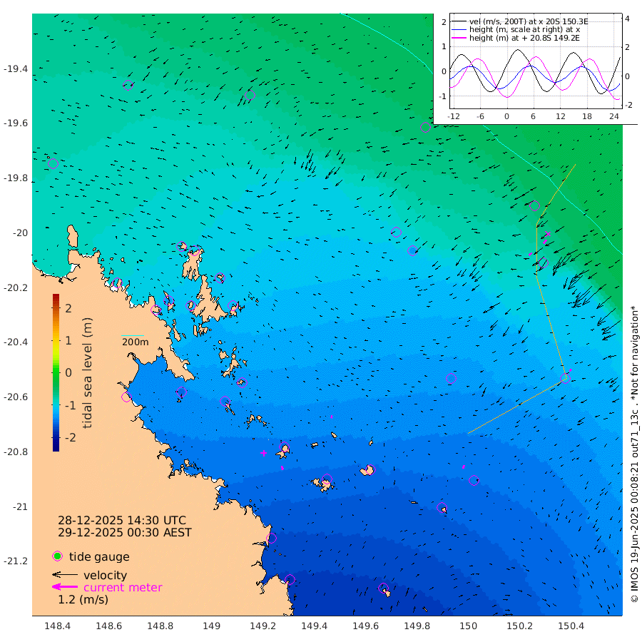 17cm/s 158T +10cm/s rms + 2cm/s 5T. Brampton I 18m 15cm/s -177T +9cm/s rms + 6cm/s 66T. Wigton I 38m 16cm/s -153T +7cm/s rms + 8cm/s 141T. Tern I 47m 22cm/s -141T +7cm/s rms + 12cm/s 54T. N Bugatti Rf 64m 17cm/s -128T +3cm/s rms + 13cm/s 178T. W Bugatti Rf 70m 11cm/s -136T +3cm/s rms + 3cm/s -130T. Creal Rf 69m -82cm Holbourne I -150cm Tern I -83cm Bugatti Rf -108cm Creal Rf -64cm White Tip I -77cm Wallaby Reef -65cm Kennedy Reef -52cm Unnamed Reef No. 2 -102cm Tideway Reef -100cm Hayman Island -128cm Square Reef -101cm Double Bay -133cm Molle Island -119cm Cid Harbour -99cm Hook Island -109cm Border Island -116cm Haslewood Island -117cm Shute Harbour -137cm Thomas Island -135cm Credlin Reef -153cm East Repulse Island -149cm Blacksmith Island -161cm Laguna Quays -150cm Carlisle Island (Off) -162cm St. Bees Island -153cm Scawfell Island -158cm Penrith Island -174cm Mackay Outer Harbour -181cm Hay Point -171cm Prudhoe Island