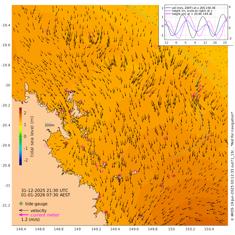 22cm/s -155T +10cm/s rms + 2cm/s 5T. Brampton I 18m 33cm/s 166T +9cm/s rms + 6cm/s 66T. Wigton I 38m 4cm/s -107T +7cm/s rms + 8cm/s 141T. Tern I 47m 36cm/s 179T +7cm/s rms + 12cm/s 54T. N Bugatti Rf 64m 62cm/s -152T +3cm/s rms + 13cm/s 178T. W Bugatti Rf 70m 18cm/s 170T +3cm/s rms + 3cm/s -130T. Creal Rf 69m 140cm Holbourne I 195cm Tern I 134cm Bugatti Rf 151cm Creal Rf 124cm White Tip I 128cm Wallaby Reef 131cm Kennedy Reef 131cm Unnamed Reef No. 2 142cm Tideway Reef 152cm Hayman Island 163cm Square Reef 154cm Double Bay 155cm Molle Island 155cm Cid Harbour 144cm Hook Island 140cm Border Island 142cm Haslewood Island 153cm Shute Harbour 160cm Thomas Island 183cm Credlin Reef 182cm East Repulse Island 167cm Blacksmith Island 164cm Laguna Quays 185cm Carlisle Island (Off) 194cm St. Bees Island 173cm Scawfell Island 193cm Penrith Island 193cm Mackay Outer Harbour 206cm Hay Point 207cm Prudhoe Island