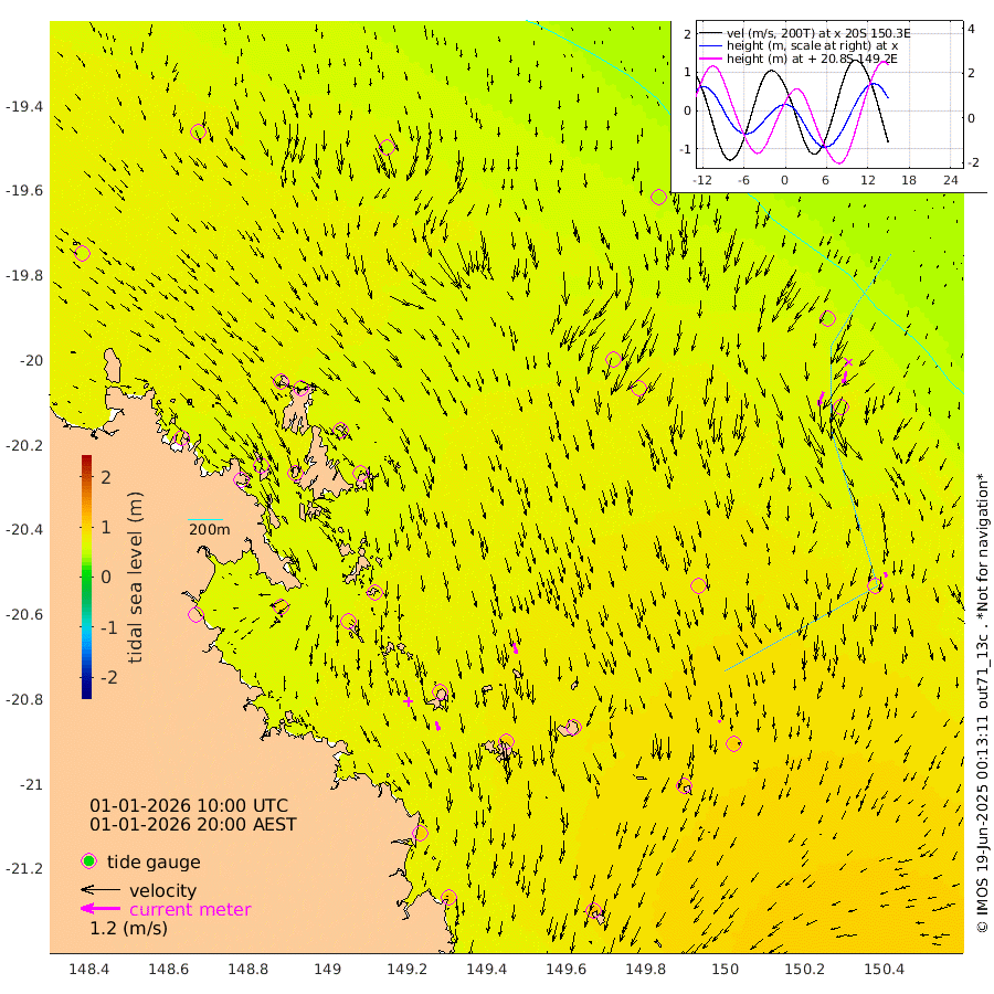 27cm/s 162T +10cm/s rms + 2cm/s 5T. Brampton I 18m 35cm/s 164T +9cm/s rms + 6cm/s 66T. Wigton I 38m 7cm/s 153T +7cm/s rms + 8cm/s 141T. Tern I 47m 37cm/s -168T +7cm/s rms + 12cm/s 54T. N Bugatti Rf 64m 45cm/s -159T +3cm/s rms + 13cm/s 178T. W Bugatti Rf 70m 16cm/s 157T +3cm/s rms + 3cm/s -130T. Creal Rf 69m 57cm Holbourne I 104cm Tern I 51cm Bugatti Rf 69cm Creal Rf 40cm White Tip I 49cm Wallaby Reef 47cm Kennedy Reef 43cm Unnamed Reef No. 2 53cm Tideway Reef 61cm Hayman Island 66cm Square Reef 72cm Double Bay 59cm Molle Island 68cm Cid Harbour 57cm Hook Island 53cm Border Island 65cm Haslewood Island 67cm Shute Harbour 73cm Thomas Island 83cm Credlin Reef 88cm East Repulse Island 78cm Blacksmith Island 79cm Laguna Quays 94cm Carlisle Island (Off) 103cm St. Bees Island 96cm Scawfell Island 101cm Penrith Island 100cm Mackay Outer Harbour 111cm Hay Point 114cm Prudhoe Island