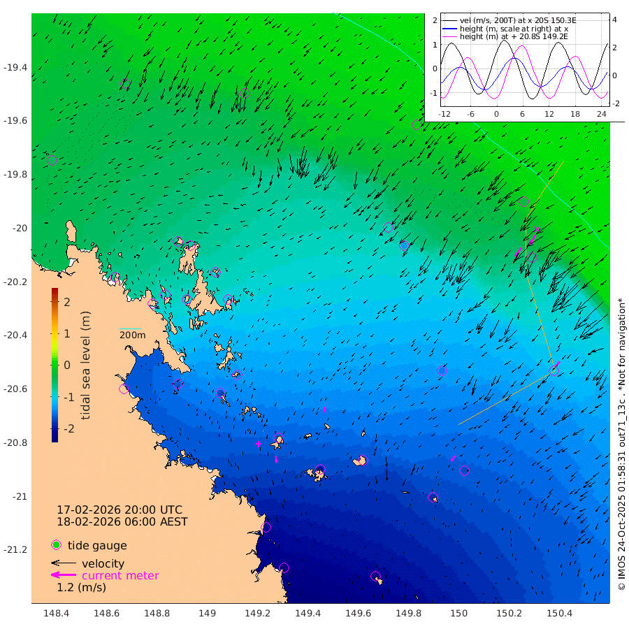 27cm/s 173T +10cm/s rms + 2cm/s 5T. Brampton I 18m 26cm/s -176T +9cm/s rms + 6cm/s 66T. Wigton I 38m 31cm/s -147T +7cm/s rms + 8cm/s 141T. Tern I 47m 51cm/s -151T +7cm/s rms + 12cm/s 54T. N Bugatti Rf 64m 50cm/s -145T +3cm/s rms + 13cm/s 178T. W Bugatti Rf 70m 26cm/s -137T +3cm/s rms + 3cm/s -130T. Creal Rf 69m -48cm Holbourne I -169cm Tern I -65cm Bugatti Rf -112cm Creal Rf -31cm White Tip I -40cm Wallaby Reef -27cm Kennedy Reef -4cm Unnamed Reef No. 2 -89cm Tideway Reef -74cm Hayman Island -129cm Square Reef -73cm Double Bay -93cm Molle Island -110cm Cid Harbour -79cm Hook Island -105cm Border Island -112cm Haslewood Island -107cm Shute Harbour -147cm Thomas Island -146cm Credlin Reef -158cm East Repulse Island -169cm Blacksmith Island -183cm Laguna Quays -163cm Carlisle Island (Off) -199cm St. Bees Island -177cm Scawfell Island -180cm Penrith Island -208cm Mackay Outer Harbour -221cm Hay Point -216cm Prudhoe Island