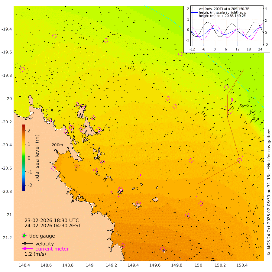 21cm/s -41T +10cm/s rms + 2cm/s 5T. Brampton I 18m 14cm/s -4T +9cm/s rms + 6cm/s 66T. Wigton I 38m 14cm/s 12T +7cm/s rms + 8cm/s 141T. Tern I 47m 22cm/s 34T +7cm/s rms + 12cm/s 54T. N Bugatti Rf 64m 10cm/s 35T +3cm/s rms + 13cm/s 178T. W Bugatti Rf 70m 11cm/s 28T +3cm/s rms + 3cm/s -130T. Creal Rf 69m 73cm Holbourne I 131cm Tern I 73cm Bugatti Rf 92cm Creal Rf 58cm White Tip I 65cm Wallaby Reef 63cm Kennedy Reef 53cm Unnamed Reef No. 2 90cm Tideway Reef 89cm Hayman Island 103cm Square Reef 91cm Double Bay 114cm Molle Island 106cm Cid Harbour 89cm Hook Island 101cm Border Island 101cm Haslewood Island 105cm Shute Harbour 122cm Thomas Island 123cm Credlin Reef 145cm East Repulse Island 135cm Blacksmith Island 142cm Laguna Quays 139cm Carlisle Island (Off) 146cm St. Bees Island 133cm Scawfell Island 140cm Penrith Island 157cm Mackay Outer Harbour 164cm Hay Point 147cm Prudhoe Island