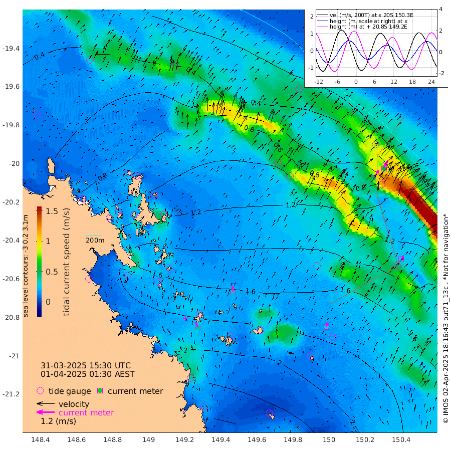 39cm/s -23T +10cm/s rms + 2cm/s 5T. Brampton I 18m 35cm/s -5T +9cm/s rms + 6cm/s 66T. Wigton I 38m 30cm/s 23T +7cm/s rms + 8cm/s 141T. Tern I 47m 58cm/s 25T +7cm/s rms + 12cm/s 54T. N Bugatti Rf 64m 58cm/s 35T +3cm/s rms + 13cm/s 178T. W Bugatti Rf 70m 29cm/s 27T +3cm/s rms + 3cm/s -130T. Creal Rf 69m 60cm Holbourne I 176cm Tern I 77cm Bugatti Rf 118cm Creal Rf 46cm White Tip I 52cm Wallaby Reef 42cm Kennedy Reef 26cm Unnamed Reef No. 2 102cm Tideway Reef 86cm Hayman Island 129cm Square Reef 94cm Double Bay 124cm Molle Island 125cm Cid Harbour 97cm Hook Island 118cm Border Island 126cm Haslewood Island 123cm Shute Harbour 163cm Thomas Island 158cm Credlin Reef 188cm East Repulse Island 183cm Blacksmith Island 200cm Laguna Quays 184cm Carlisle Island (Off) 209cm St. Bees Island 183cm Scawfell Island 186cm Penrith Island 224cm Mackay Outer Harbour 235cm Hay Point 215cm Prudhoe Island