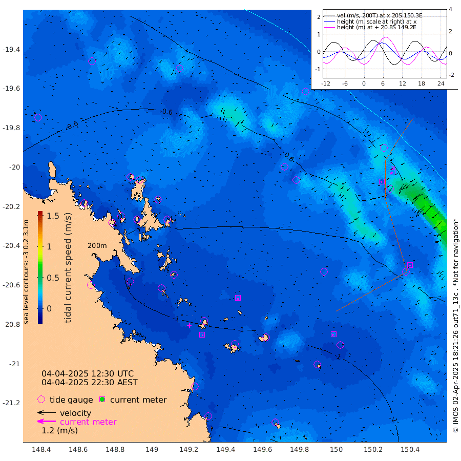 8cm/s 154T +10cm/s rms + 2cm/s 5T. Brampton I 18m 12cm/s -169T +9cm/s rms + 6cm/s 66T. Wigton I 38m 11cm/s -141T +7cm/s rms + 8cm/s 141T. Tern I 47m 15cm/s -137T +7cm/s rms + 12cm/s 54T. N Bugatti Rf 64m 5cm/s -115T +3cm/s rms + 13cm/s 178T. W Bugatti Rf 70m 6cm/s -134T +3cm/s rms + 3cm/s -130T. Creal Rf 69m -60cm Holbourne I -93cm Tern I -47cm Bugatti Rf -60cm Creal Rf -36cm White Tip I -49cm Wallaby Reef -47cm Kennedy Reef -37cm Unnamed Reef No. 2 -68cm Tideway Reef -68cm Hayman Island -73cm Square Reef -77cm Double Bay -89cm Molle Island -76cm Cid Harbour -69cm Hook Island -72cm Border Island -77cm Haslewood Island -79cm Shute Harbour -87cm Thomas Island -86cm Credlin Reef -108cm East Repulse Island -92cm Blacksmith Island -104cm Laguna Quays -105cm Carlisle Island (Off) -101cm St. Bees Island -89cm Scawfell Island -96cm Penrith Island -110cm Mackay Outer Harbour -115cm Hay Point -104cm Prudhoe Island