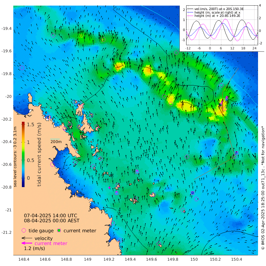 22cm/s -5T +10cm/s rms + 2cm/s 5T. Brampton I 18m 26cm/s -18T +9cm/s rms + 6cm/s 66T. Wigton I 38m 6cm/s 7T +7cm/s rms + 8cm/s 141T. Tern I 47m 34cm/s 2T +7cm/s rms + 12cm/s 54T. N Bugatti Rf 64m 54cm/s 29T +3cm/s rms + 13cm/s 178T. W Bugatti Rf 70m 18cm/s 0T +3cm/s rms + 3cm/s -130T. Creal Rf 69m -95cm Holbourne I -100cm Tern I -73cm Bugatti Rf -77cm Creal Rf -72cm White Tip I -80cm Wallaby Reef -88cm Kennedy Reef -82cm Unnamed Reef No. 2 -83cm Tideway Reef -92cm Hayman Island -91cm Square Reef -100cm Double Bay -89cm Molle Island -79cm Cid Harbour -90cm Hook Island -76cm Border Island -74cm Haslewood Island -86cm Shute Harbour -79cm Thomas Island -94cm Credlin Reef -89cm East Repulse Island -73cm Blacksmith Island -79cm Laguna Quays -95cm Carlisle Island (Off) -90cm St. Bees Island -77cm Scawfell Island -97cm Penrith Island -90cm Mackay Outer Harbour -97cm Hay Point -107cm Prudhoe Island
