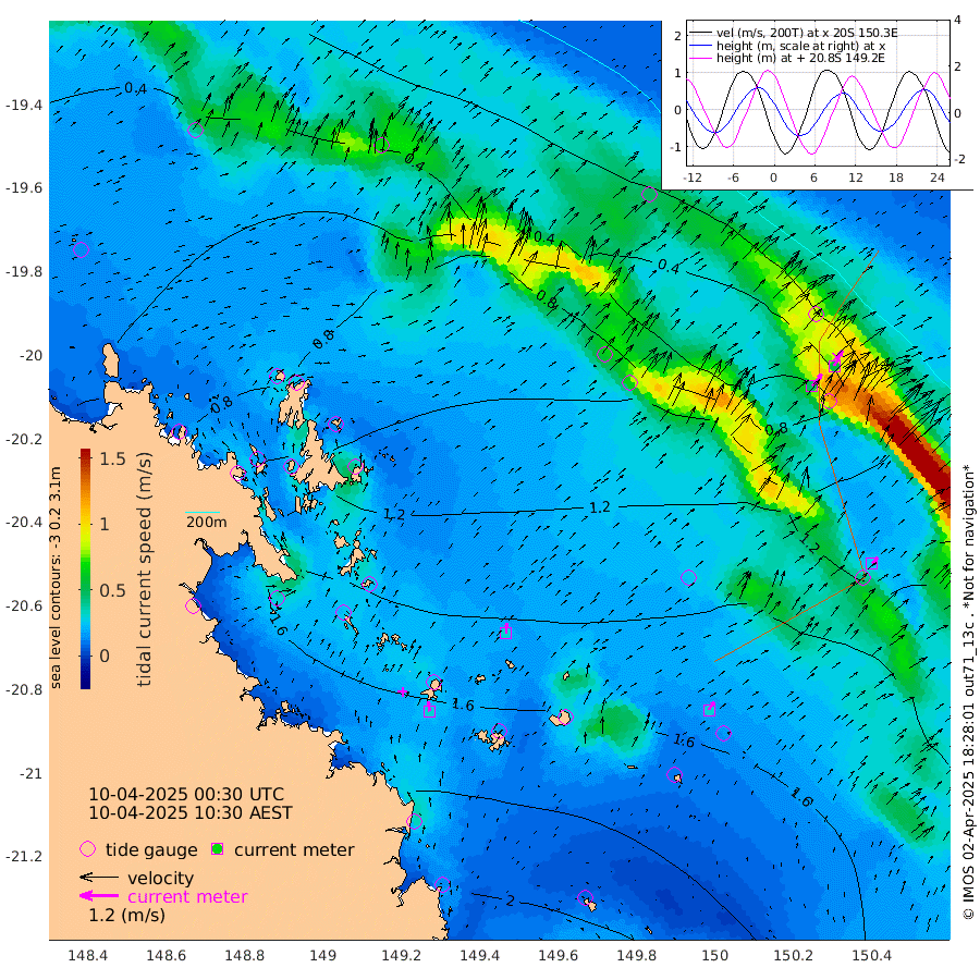 30cm/s -10T +10cm/s rms + 2cm/s 5T. Brampton I 18m 30cm/s 2T +9cm/s rms + 6cm/s 66T. Wigton I 38m 30cm/s 32T +7cm/s rms + 8cm/s 141T. Tern I 47m 53cm/s 28T +7cm/s rms + 12cm/s 54T. N Bugatti Rf 64m 47cm/s 39T +3cm/s rms + 13cm/s 178T. W Bugatti Rf 70m 25cm/s 42T +3cm/s rms + 3cm/s -130T. Creal Rf 69m 67cm Holbourne I 169cm Tern I 74cm Bugatti Rf 116cm Creal Rf 44cm White Tip I 52cm Wallaby Reef 30cm Kennedy Reef 25cm Unnamed Reef No. 2 103cm Tideway Reef 83cm Hayman Island 137cm Square Reef 101cm Double Bay 108cm Molle Island 113cm Cid Harbour 96cm Hook Island 108cm Border Island 124cm Haslewood Island 118cm Shute Harbour 152cm Thomas Island 153cm Credlin Reef 171cm East Repulse Island 158cm Blacksmith Island 185cm Laguna Quays 174cm Carlisle Island (Off) 199cm St. Bees Island 170cm Scawfell Island 171cm Penrith Island 206cm Mackay Outer Harbour 216cm Hay Point 220cm Prudhoe Island