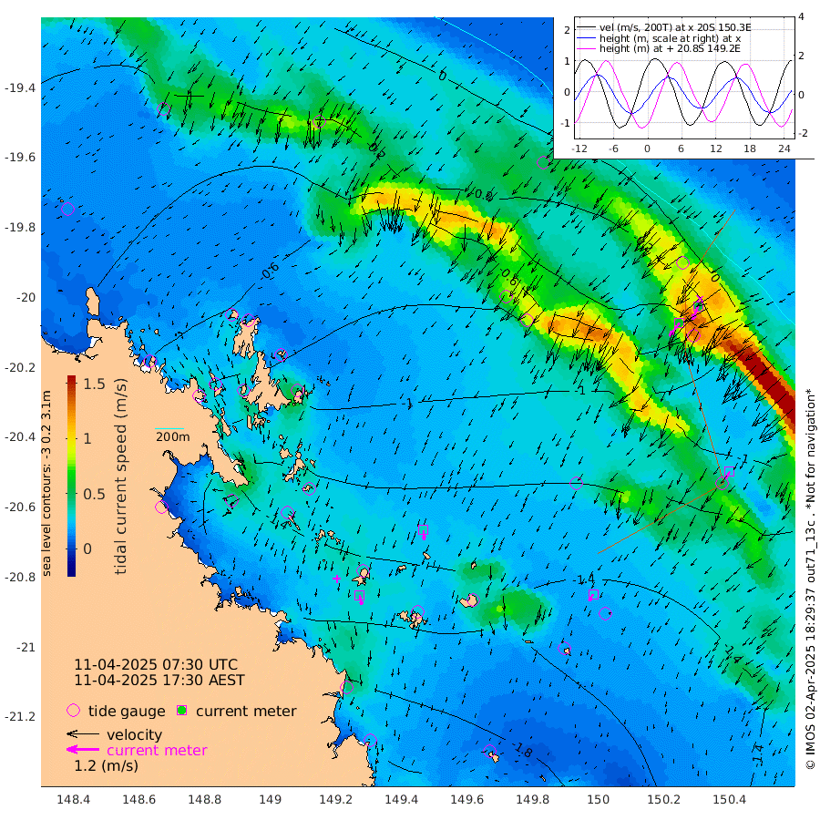 36cm/s 167T +10cm/s rms + 2cm/s 5T. Brampton I 18m 35cm/s 177T +9cm/s rms + 6cm/s 66T. Wigton I 38m 29cm/s -149T +7cm/s rms + 8cm/s 141T. Tern I 47m 54cm/s -158T +7cm/s rms + 12cm/s 54T. N Bugatti Rf 64m 59cm/s -142T +3cm/s rms + 13cm/s 178T. W Bugatti Rf 70m 28cm/s -149T +3cm/s rms + 3cm/s -130T. Creal Rf 69m -45cm Holbourne I -143cm Tern I -56cm Bugatti Rf -95cm Creal Rf -28cm White Tip I -34cm Wallaby Reef -16cm Kennedy Reef -9cm Unnamed Reef No. 2 -81cm Tideway Reef -58cm Hayman Island -107cm Square Reef -79cm Double Bay -96cm Molle Island -91cm Cid Harbour -75cm Hook Island -85cm Border Island -101cm Haslewood Island -96cm Shute Harbour -133cm Thomas Island -124cm Credlin Reef -146cm East Repulse Island -137cm Blacksmith Island -164cm Laguna Quays -146cm Carlisle Island (Off) -160cm St. Bees Island -137cm Scawfell Island -144cm Penrith Island -182cm Mackay Outer Harbour -192cm Hay Point -191cm Prudhoe Island
