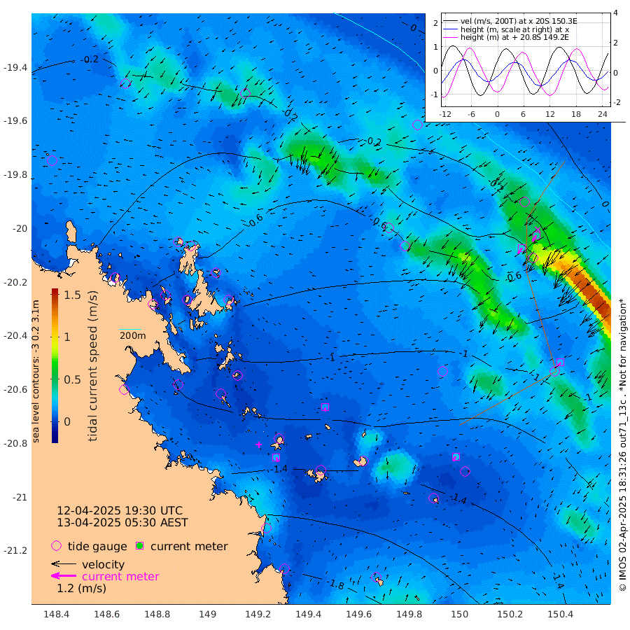 22cm/s 161T +10cm/s rms + 2cm/s 5T. Brampton I 18m 18cm/s -176T +9cm/s rms + 6cm/s 66T. Wigton I 38m 24cm/s -154T +7cm/s rms + 8cm/s 141T. Tern I 47m 35cm/s -148T +7cm/s rms + 12cm/s 54T. N Bugatti Rf 64m 31cm/s -142T +3cm/s rms + 13cm/s 178T. W Bugatti Rf 70m 21cm/s -142T +3cm/s rms + 3cm/s -130T. Creal Rf 69m -44cm Holbourne I -145cm Tern I -55cm Bugatti Rf -96cm Creal Rf -27cm White Tip I -26cm Wallaby Reef -19cm Kennedy Reef -9cm Unnamed Reef No. 2 -70cm Tideway Reef -55cm Hayman Island -98cm Square Reef -75cm Double Bay -67cm Molle Island -76cm Cid Harbour -71cm Hook Island -74cm Border Island -82cm Haslewood Island -84cm Shute Harbour -120cm Thomas Island -118cm Credlin Reef -126cm East Repulse Island -122cm Blacksmith Island -146cm Laguna Quays -131cm Carlisle Island (Off) -163cm St. Bees Island -137cm Scawfell Island -140cm Penrith Island -174cm Mackay Outer Harbour -186cm Hay Point -195cm Prudhoe Island