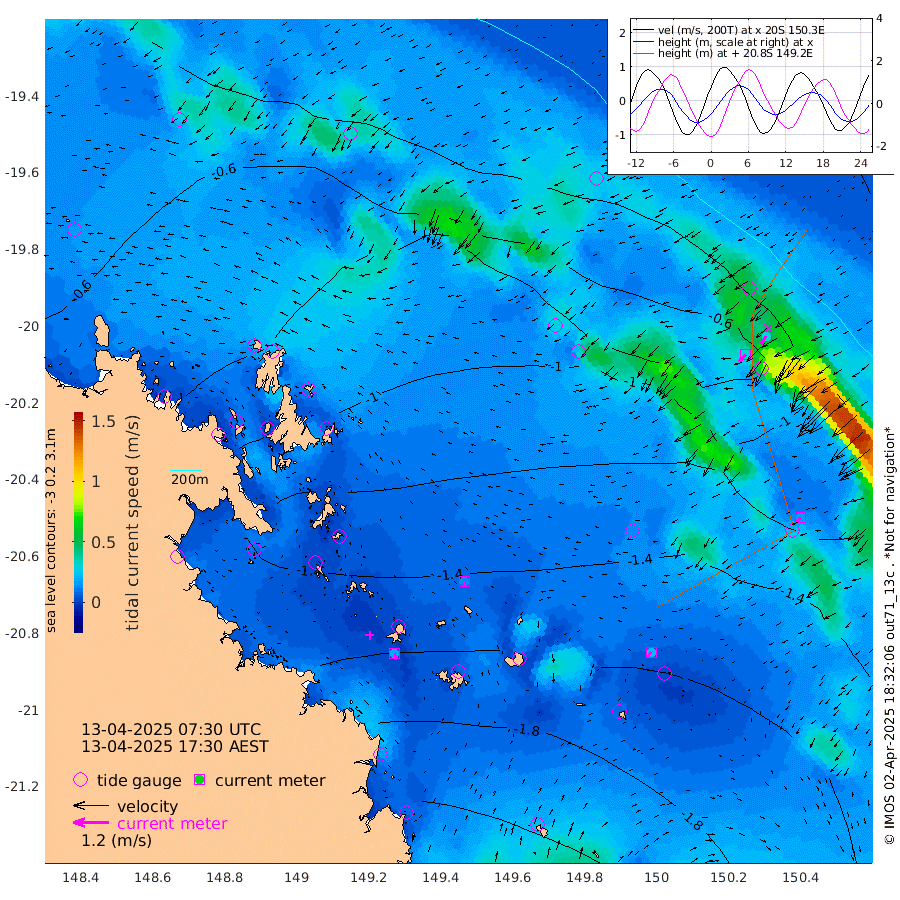 21cm/s 164T +10cm/s rms + 2cm/s 5T. Brampton I 18m 14cm/s -172T +9cm/s rms + 6cm/s 66T. Wigton I 38m 22cm/s -148T +7cm/s rms + 8cm/s 141T. Tern I 47m 31cm/s -149T +7cm/s rms + 12cm/s 54T. N Bugatti Rf 64m 30cm/s -137T +3cm/s rms + 13cm/s 178T. W Bugatti Rf 70m 18cm/s -137T +3cm/s rms + 3cm/s -130T. Creal Rf 69m -73cm Holbourne I -173cm Tern I -79cm Bugatti Rf -120cm Creal Rf -52cm White Tip I -56cm Wallaby Reef -53cm Kennedy Reef -35cm Unnamed Reef No. 2 -99cm Tideway Reef -82cm Hayman Island -131cm Square Reef -94cm Double Bay -115cm Molle Island -109cm Cid Harbour -98cm Hook Island -103cm Border Island -112cm Haslewood Island -114cm Shute Harbour -149cm Thomas Island -144cm Credlin Reef -155cm East Repulse Island -154cm Blacksmith Island -176cm Laguna Quays -159cm Carlisle Island (Off) -173cm St. Bees Island -152cm Scawfell Island -173cm Penrith Island -203cm Mackay Outer Harbour -215cm Hay Point -219cm Prudhoe Island