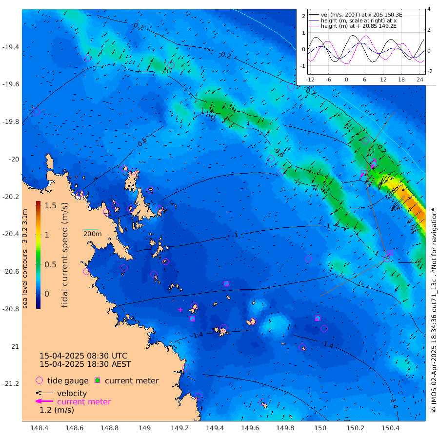 20cm/s 164T +10cm/s rms + 2cm/s 5T. Brampton I 18m 15cm/s -177T +9cm/s rms + 6cm/s 66T. Wigton I 38m 19cm/s -152T +7cm/s rms + 8cm/s 141T. Tern I 47m 33cm/s -151T +7cm/s rms + 12cm/s 54T. N Bugatti Rf 64m 33cm/s -143T +3cm/s rms + 13cm/s 178T. W Bugatti Rf 70m 15cm/s -145T +3cm/s rms + 3cm/s -130T. Creal Rf 69m -56cm Holbourne I -138cm Tern I -61cm Bugatti Rf -95cm Creal Rf -38cm White Tip I -40cm Wallaby Reef -43cm Kennedy Reef -21cm Unnamed Reef No. 2 -75cm Tideway Reef -63cm Hayman Island -102cm Square Reef -68cm Double Bay -95cm Molle Island -87cm Cid Harbour -78cm Hook Island -85cm Border Island -88cm Haslewood Island -90cm Shute Harbour -118cm Thomas Island -113cm Credlin Reef -123cm East Repulse Island -127cm Blacksmith Island -144cm Laguna Quays -127cm Carlisle Island (Off) -140cm St. Bees Island -126cm Scawfell Island -142cm Penrith Island -166cm Mackay Outer Harbour -176cm Hay Point -173cm Prudhoe Island