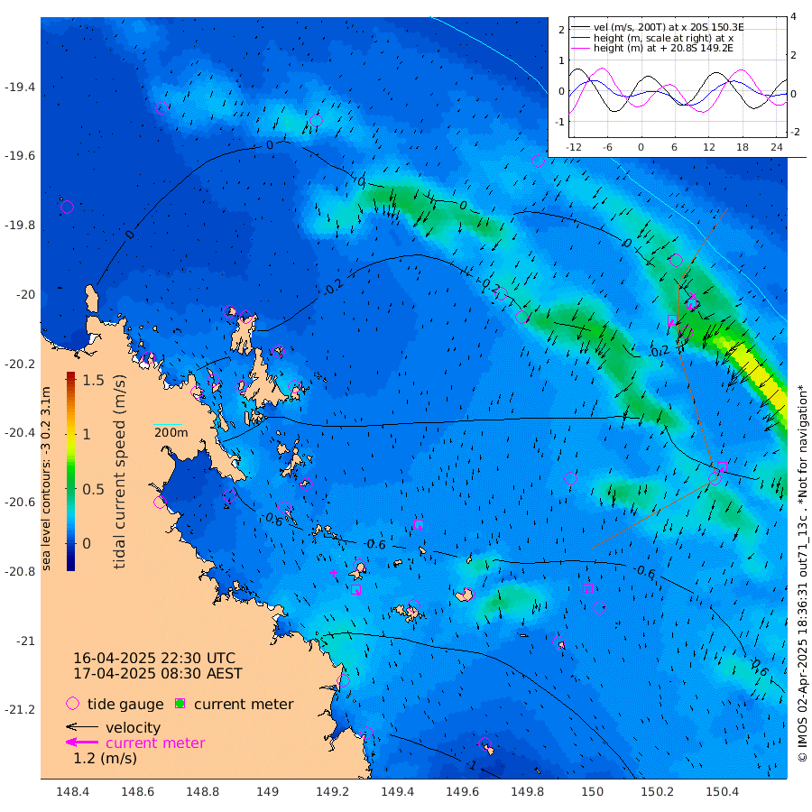 24cm/s 152T +10cm/s rms + 2cm/s 5T. Brampton I 18m 21cm/s 168T +9cm/s rms + 6cm/s 66T. Wigton I 38m 15cm/s -169T +7cm/s rms + 8cm/s 141T. Tern I 47m 25cm/s -161T +7cm/s rms + 12cm/s 54T. N Bugatti Rf 64m 28cm/s -151T +3cm/s rms + 13cm/s 178T. W Bugatti Rf 70m 18cm/s -170T +3cm/s rms + 3cm/s -130T. Creal Rf 69m -4cm Holbourne I -52cm Tern I -12cm Bugatti Rf -29cm Creal Rf 0cm White Tip I 4cm Wallaby Reef 4cm Kennedy Reef 11cm Unnamed Reef No. 2 -17cm Tideway Reef -11cm Hayman Island -24cm Square Reef -19cm Double Bay -27cm Molle Island -19cm Cid Harbour -18cm Hook Island -24cm Border Island -21cm Haslewood Island -25cm Shute Harbour -45cm Thomas Island -36cm Credlin Reef -44cm East Repulse Island -46cm Blacksmith Island -60cm Laguna Quays -43cm Carlisle Island (Off) -46cm St. Bees Island -48cm Scawfell Island -53cm Penrith Island -74cm Mackay Outer Harbour -79cm Hay Point -75cm Prudhoe Island