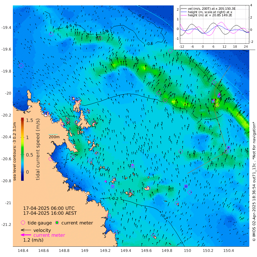 20cm/s -10T +10cm/s rms + 2cm/s 5T. Brampton I 18m 27cm/s -10T +9cm/s rms + 6cm/s 66T. Wigton I 38m 10cm/s 27T +7cm/s rms + 8cm/s 141T. Tern I 47m 20cm/s 11T +7cm/s rms + 12cm/s 54T. N Bugatti Rf 64m 30cm/s 32T +3cm/s rms + 13cm/s 178T. W Bugatti Rf 70m 16cm/s -2T +3cm/s rms + 3cm/s -130T. Creal Rf 69m -54cm Holbourne I -57cm Tern I -58cm Bugatti Rf -57cm Creal Rf -59cm White Tip I -58cm Wallaby Reef -57cm Kennedy Reef -62cm Unnamed Reef No. 2 -52cm Tideway Reef -57cm Hayman Island -64cm Square Reef -51cm Double Bay -51cm Molle Island -62cm Cid Harbour -51cm Hook Island -51cm Border Island -54cm Haslewood Island -52cm Shute Harbour -46cm Thomas Island -63cm Credlin Reef -52cm East Repulse Island -58cm Blacksmith Island -40cm Laguna Quays -58cm Carlisle Island (Off) -76cm St. Bees Island -64cm Scawfell Island -63cm Penrith Island -47cm Mackay Outer Harbour -49cm Hay Point -48cm Prudhoe Island