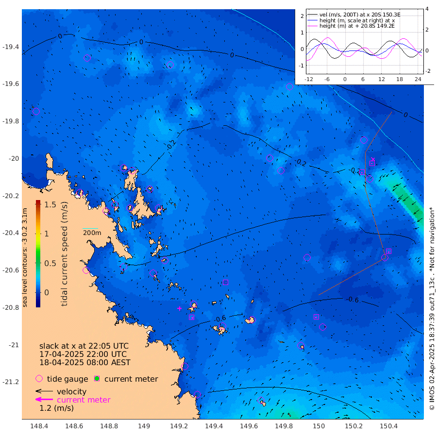 11cm/s 130T +10cm/s rms + 2cm/s 5T. Brampton I 18m 2cm/s 120T +9cm/s rms + 6cm/s 66T. Wigton I 38m 9cm/s -169T +7cm/s rms + 8cm/s 141T. Tern I 47m 5cm/s -150T +7cm/s rms + 12cm/s 54T. N Bugatti Rf 64m 8cm/s -156T +3cm/s rms + 13cm/s 178T. W Bugatti Rf 70m 8cm/s -159T +3cm/s rms + 3cm/s -130T. Creal Rf 69m -4cm Holbourne I -63cm Tern I -18cm Bugatti Rf -36cm Creal Rf -6cm White Tip I 1cm Wallaby Reef -4cm Kennedy Reef 4cm Unnamed Reef No. 2 -14cm Tideway Reef -16cm Hayman Island -23cm Square Reef -9cm Double Bay -24cm Molle Island -27cm Cid Harbour -15cm Hook Island -26cm Border Island -24cm Haslewood Island -25cm Shute Harbour -44cm Thomas Island -43cm Credlin Reef -47cm East Repulse Island -53cm Blacksmith Island -56cm Laguna Quays -48cm Carlisle Island (Off) -48cm St. Bees Island -55cm Scawfell Island -66cm Penrith Island -77cm Mackay Outer Harbour -84cm Hay Point -75cm Prudhoe Island