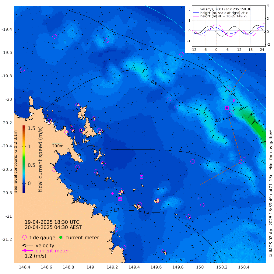 13cm/s -39T +10cm/s rms + 2cm/s 5T. Brampton I 18m 10cm/s -5T +9cm/s rms + 6cm/s 66T. Wigton I 38m 9cm/s 10T +7cm/s rms + 8cm/s 141T. Tern I 47m 15cm/s 37T +7cm/s rms + 12cm/s 54T. N Bugatti Rf 64m 3cm/s 16T +3cm/s rms + 13cm/s 178T. W Bugatti Rf 70m 6cm/s 28T +3cm/s rms + 3cm/s -130T. Creal Rf 69m 83cm Holbourne I 113cm Tern I 77cm Bugatti Rf 87cm Creal Rf 68cm White Tip I 76cm Wallaby Reef 72cm Kennedy Reef 63cm Unnamed Reef No. 2 93cm Tideway Reef 93cm Hayman Island 110cm Square Reef 93cm Double Bay 119cm Molle Island 99cm Cid Harbour 90cm Hook Island 99cm Border Island 94cm Haslewood Island 100cm Shute Harbour 107cm Thomas Island 110cm Credlin Reef 116cm East Repulse Island 117cm Blacksmith Island 123cm Laguna Quays 117cm Carlisle Island (Off) 115cm St. Bees Island 114cm Scawfell Island 128cm Penrith Island 131cm Mackay Outer Harbour 135cm Hay Point 128cm Prudhoe Island