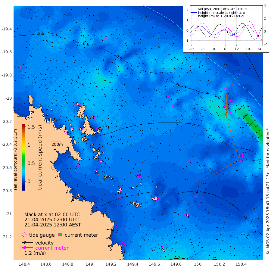 8cm/s 121T +10cm/s rms + 2cm/s 5T. Brampton I 18m 1cm/s -11T +9cm/s rms + 6cm/s 66T. Wigton I 38m 7cm/s -163T +7cm/s rms + 8cm/s 141T. Tern I 47m 8cm/s -27T +7cm/s rms + 12cm/s 54T. N Bugatti Rf 64m 12cm/s 12T +3cm/s rms + 13cm/s 178T. W Bugatti Rf 70m 3cm/s -92T +3cm/s rms + 3cm/s -130T. Creal Rf 69m -65cm Holbourne I -112cm Tern I -67cm Bugatti Rf -82cm Creal Rf -58cm White Tip I -64cm Wallaby Reef -59cm Kennedy Reef -52cm Unnamed Reef No. 2 -79cm Tideway Reef -82cm Hayman Island -98cm Square Reef -73cm Double Bay -96cm Molle Island -87cm Cid Harbour -74cm Hook Island -81cm Border Island -79cm Haslewood Island -86cm Shute Harbour -98cm Thomas Island -103cm Credlin Reef -105cm East Repulse Island -101cm Blacksmith Island -108cm Laguna Quays -103cm Carlisle Island (Off) -99cm St. Bees Island -101cm Scawfell Island -122cm Penrith Island -123cm Mackay Outer Harbour -130cm Hay Point -129cm Prudhoe Island
