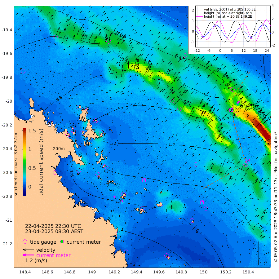 25cm/s -8T +10cm/s rms + 2cm/s 5T. Brampton I 18m 23cm/s 5T +9cm/s rms + 6cm/s 66T. Wigton I 38m 24cm/s 35T +7cm/s rms + 8cm/s 141T. Tern I 47m 42cm/s 31T +7cm/s rms + 12cm/s 54T. N Bugatti Rf 64m 31cm/s 38T +3cm/s rms + 13cm/s 178T. W Bugatti Rf 70m 19cm/s 51T +3cm/s rms + 3cm/s -130T. Creal Rf 69m 79cm Holbourne I 161cm Tern I 82cm Bugatti Rf 115cm Creal Rf 57cm White Tip I 72cm Wallaby Reef 54cm Kennedy Reef 40cm Unnamed Reef No. 2 111cm Tideway Reef 96cm Hayman Island 149cm Square Reef 89cm Double Bay 121cm Molle Island 126cm Cid Harbour 97cm Hook Island 122cm Border Island 125cm Haslewood Island 123cm Shute Harbour 149cm Thomas Island 151cm Credlin Reef 160cm East Repulse Island 162cm Blacksmith Island 177cm Laguna Quays 161cm Carlisle Island (Off) 173cm St. Bees Island 161cm Scawfell Island 171cm Penrith Island 190cm Mackay Outer Harbour 198cm Hay Point 199cm Prudhoe Island