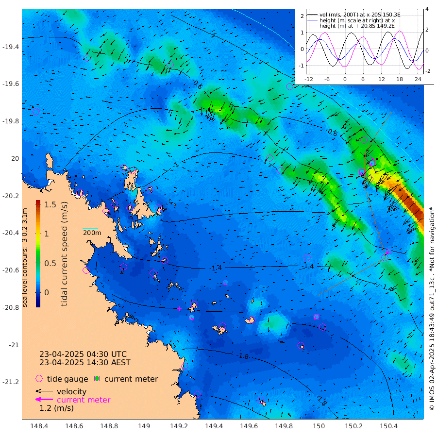 21cm/s 163T +10cm/s rms + 2cm/s 5T. Brampton I 18m 14cm/s -177T +9cm/s rms + 6cm/s 66T. Wigton I 38m 21cm/s -150T +7cm/s rms + 8cm/s 141T. Tern I 47m 26cm/s -144T +7cm/s rms + 12cm/s 54T. N Bugatti Rf 64m 23cm/s -130T +3cm/s rms + 13cm/s 178T. W Bugatti Rf 70m 16cm/s -129T +3cm/s rms + 3cm/s -130T. Creal Rf 69m -79cm Holbourne I -174cm Tern I -90cm Bugatti Rf -125cm Creal Rf -66cm White Tip I -76cm Wallaby Reef -60cm Kennedy Reef -48cm Unnamed Reef No. 2 -113cm Tideway Reef -102cm Hayman Island -151cm Square Reef -96cm Double Bay -129cm Molle Island -128cm Cid Harbour -102cm Hook Island -119cm Border Island -125cm Haslewood Island -126cm Shute Harbour -156cm Thomas Island -158cm Credlin Reef -166cm East Repulse Island -165cm Blacksmith Island -180cm Laguna Quays -166cm Carlisle Island (Off) -179cm St. Bees Island -168cm Scawfell Island -184cm Penrith Island -201cm Mackay Outer Harbour -211cm Hay Point -212cm Prudhoe Island