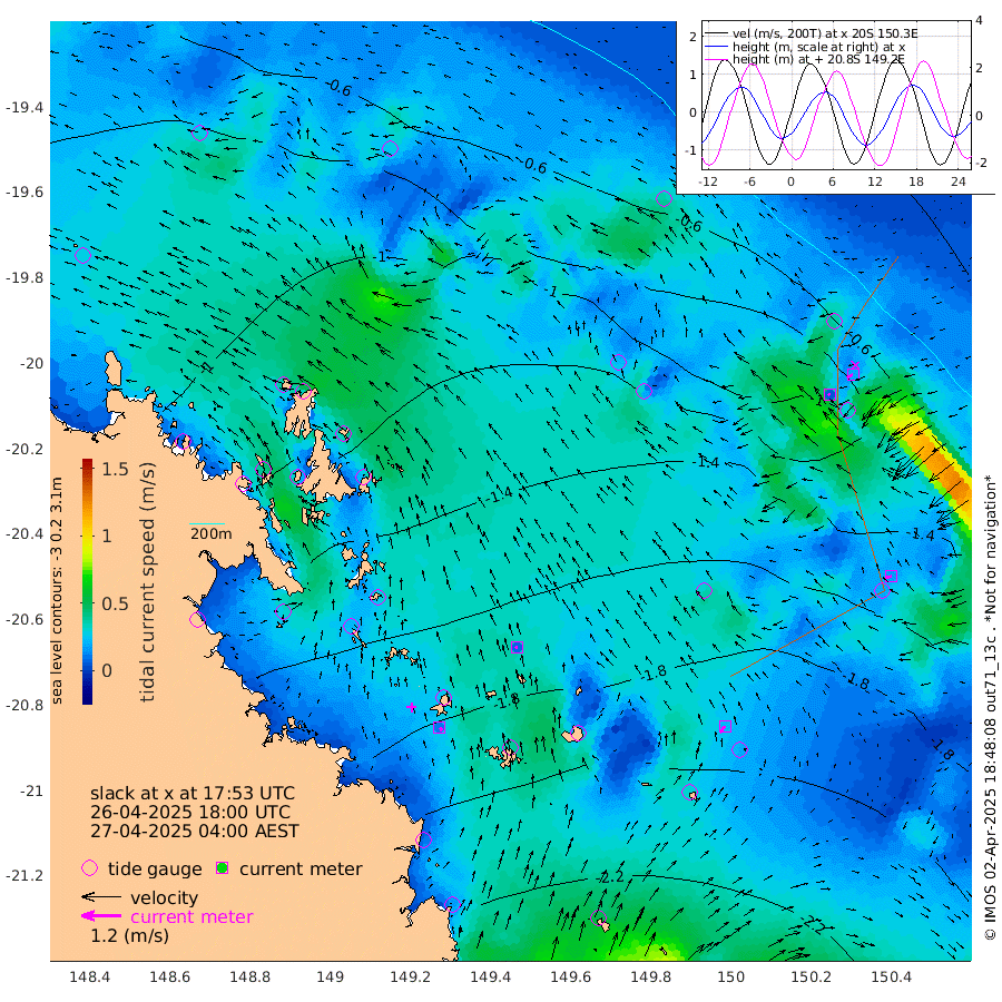 10cm/s 140T +10cm/s rms + 2cm/s 5T. Brampton I 18m 7cm/s -70T +9cm/s rms + 6cm/s 66T. Wigton I 38m 23cm/s -146T +7cm/s rms + 8cm/s 141T. Tern I 47m 21cm/s -120T +7cm/s rms + 12cm/s 54T. N Bugatti Rf 64m 6cm/s -69T +3cm/s rms + 13cm/s 178T. W Bugatti Rf 70m 18cm/s -100T +3cm/s rms + 3cm/s -130T. Creal Rf 69m -90cm Holbourne I -227cm Tern I -106cm Bugatti Rf -156cm Creal Rf -72cm White Tip I -79cm Wallaby Reef -68cm Kennedy Reef -56cm Unnamed Reef No. 2 -126cm Tideway Reef -119cm Hayman Island -167cm Square Reef -113cm Double Bay -126cm Molle Island -154cm Cid Harbour -117cm Hook Island -139cm Border Island -150cm Haslewood Island -148cm Shute Harbour -186cm Thomas Island -201cm Credlin Reef -212cm East Repulse Island -205cm Blacksmith Island -215cm Laguna Quays -216cm Carlisle Island (Off) -244cm St. Bees Island -218cm Scawfell Island -230cm Penrith Island -255cm Mackay Outer Harbour -273cm Hay Point -269cm Prudhoe Island