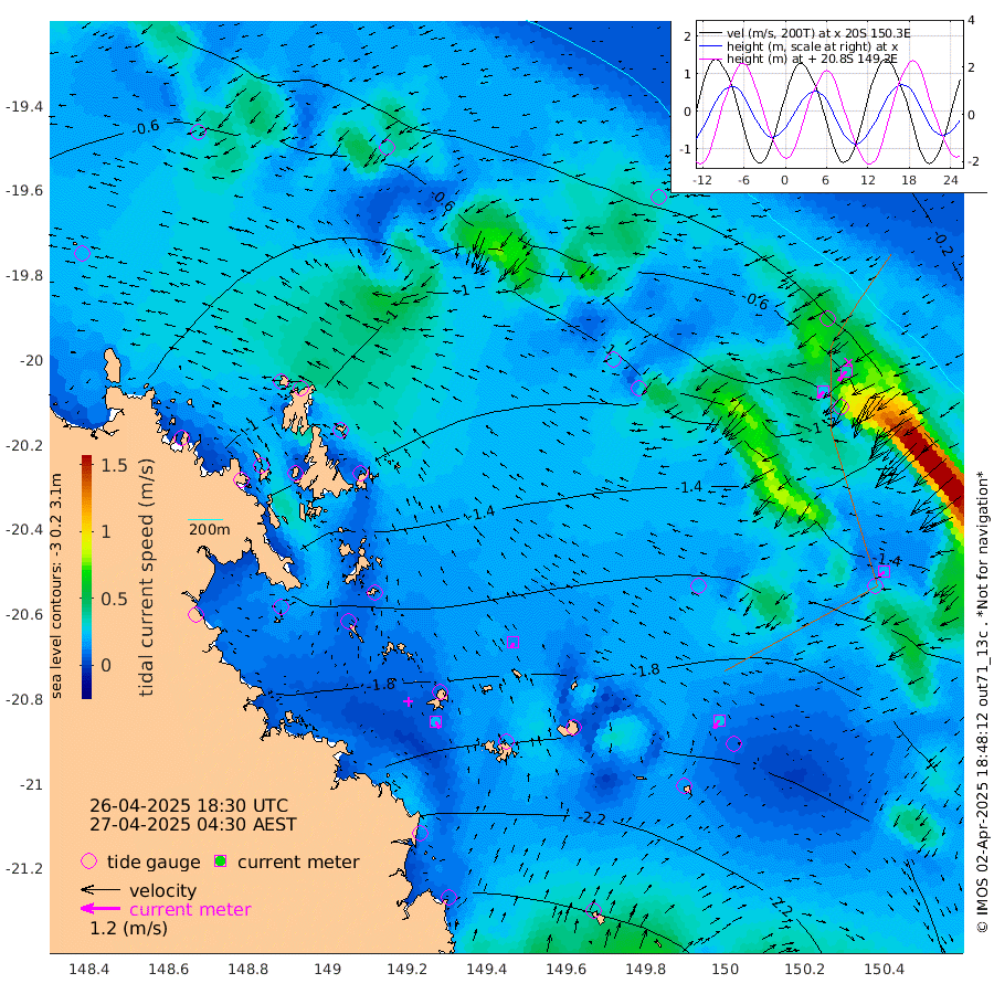 22cm/s 156T +10cm/s rms + 2cm/s 5T. Brampton I 18m 14cm/s -163T +9cm/s rms + 6cm/s 66T. Wigton I 38m 29cm/s -149T +7cm/s rms + 8cm/s 141T. Tern I 47m 37cm/s -142T +7cm/s rms + 12cm/s 54T. N Bugatti Rf 64m 25cm/s -137T +3cm/s rms + 13cm/s 178T. W Bugatti Rf 70m 22cm/s -124T +3cm/s rms + 3cm/s -130T. Creal Rf 69m -75cm Holbourne I -217cm Tern I -94cm Bugatti Rf -146cm Creal Rf -57cm White Tip I -64cm Wallaby Reef -50cm Kennedy Reef -36cm Unnamed Reef No. 2 -117cm Tideway Reef -105cm Hayman Island -157cm Square Reef -99cm Double Bay -118cm Molle Island -145cm Cid Harbour -106cm Hook Island -133cm Border Island -144cm Haslewood Island -139cm Shute Harbour -183cm Thomas Island -192cm Credlin Reef -208cm East Repulse Island -203cm Blacksmith Island -217cm Laguna Quays -210cm Carlisle Island (Off) -240cm St. Bees Island -214cm Scawfell Island -222cm Penrith Island -254cm Mackay Outer Harbour -271cm Hay Point -263cm Prudhoe Island
