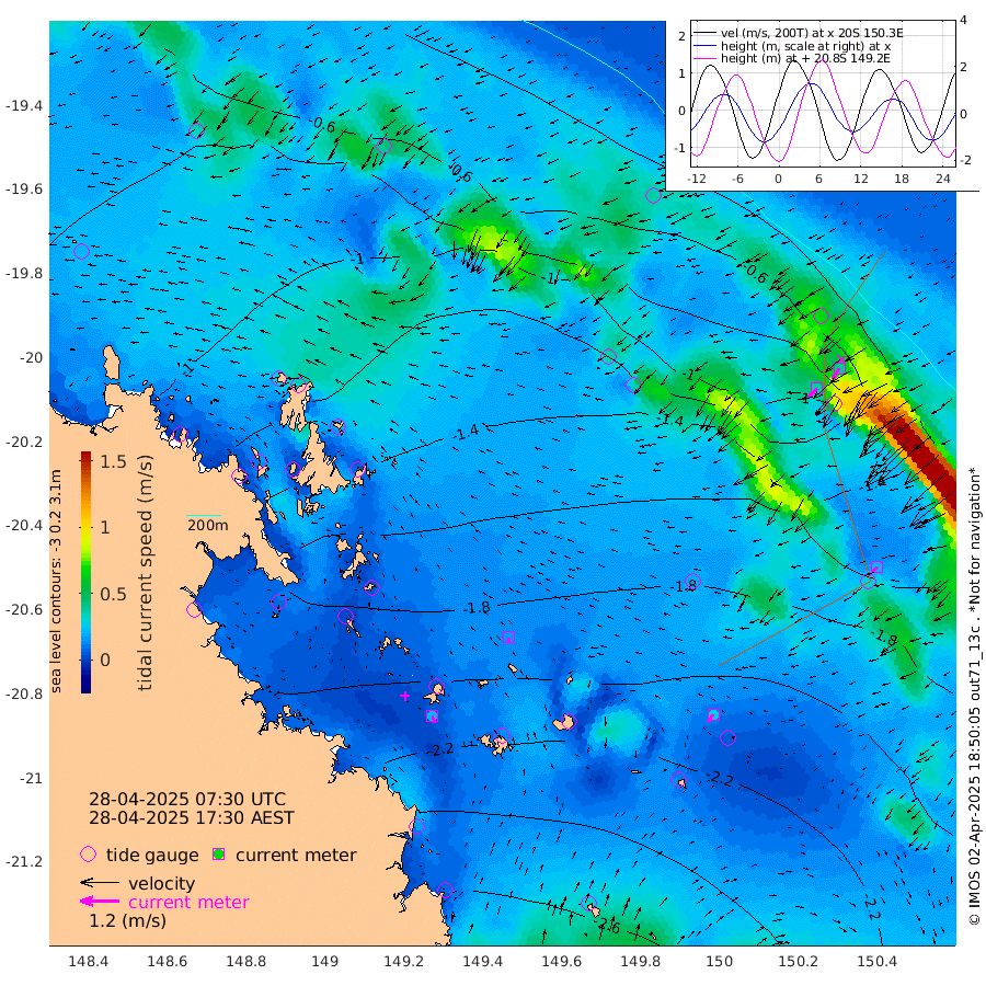 22cm/s 165T +10cm/s rms + 2cm/s 5T. Brampton I 18m 17cm/s -169T +9cm/s rms + 6cm/s 66T. Wigton I 38m 27cm/s -146T +7cm/s rms + 8cm/s 141T. Tern I 47m 40cm/s -149T +7cm/s rms + 12cm/s 54T. N Bugatti Rf 64m 37cm/s -136T +3cm/s rms + 13cm/s 178T. W Bugatti Rf 70m 22cm/s -131T +3cm/s rms + 3cm/s -130T. Creal Rf 69m -91cm Holbourne I -221cm Tern I -102cm Bugatti Rf -151cm Creal Rf -67cm White Tip I -78cm Wallaby Reef -63cm Kennedy Reef -47cm Unnamed Reef No. 2 -127cm Tideway Reef -114cm Hayman Island -166cm Square Reef -125cm Double Bay -152cm Molle Island -155cm Cid Harbour -123cm Hook Island -139cm Border Island -157cm Haslewood Island -153cm Shute Harbour -193cm Thomas Island -193cm Credlin Reef -218cm East Repulse Island -215cm Blacksmith Island -231cm Laguna Quays -221cm Carlisle Island (Off) -250cm St. Bees Island -223cm Scawfell Island -230cm Penrith Island -262cm Mackay Outer Harbour -277cm Hay Point -265cm Prudhoe Island
