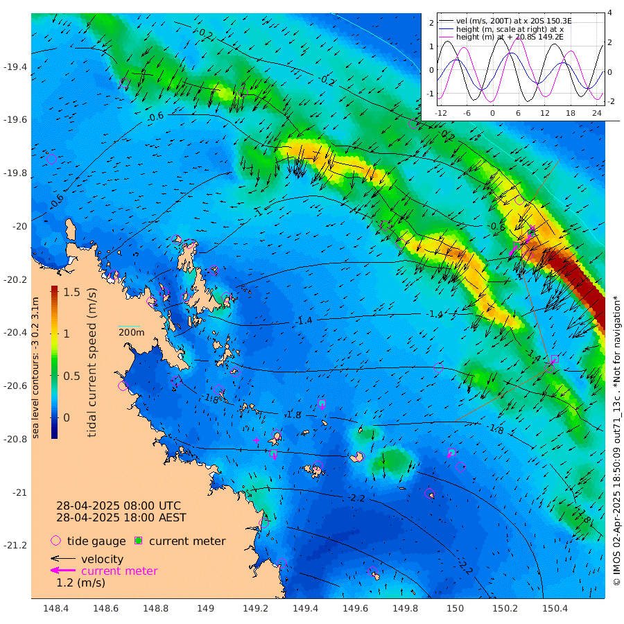 32cm/s 168T +10cm/s rms + 2cm/s 5T. Brampton I 18m 30cm/s -179T +9cm/s rms + 6cm/s 66T. Wigton I 38m 31cm/s -148T +7cm/s rms + 8cm/s 141T. Tern I 47m 55cm/s -155T +7cm/s rms + 12cm/s 54T. N Bugatti Rf 64m 57cm/s -141T +3cm/s rms + 13cm/s 178T. W Bugatti Rf 70m 28cm/s -143T +3cm/s rms + 3cm/s -130T. Creal Rf 69m -65cm Holbourne I -191cm Tern I -78cm Bugatti Rf -126cm Creal Rf -43cm White Tip I -54cm Wallaby Reef -37cm Kennedy Reef -20cm Unnamed Reef No. 2 -105cm Tideway Reef -89cm Hayman Island -140cm Square Reef -99cm Double Bay -131cm Molle Island -132cm Cid Harbour -100cm Hook Island -120cm Border Island -137cm Haslewood Island -130cm Shute Harbour -172cm Thomas Island -166cm Credlin Reef -196cm East Repulse Island -194cm Blacksmith Island -213cm Laguna Quays -196cm Carlisle Island (Off) -222cm St. Bees Island -200cm Scawfell Island -202cm Penrith Island -238cm Mackay Outer Harbour -251cm Hay Point -235cm Prudhoe Island