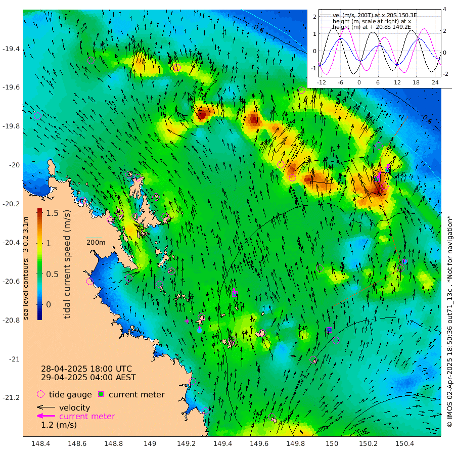 26cm/s 0T +10cm/s rms + 2cm/s 5T. Brampton I 18m 42cm/s -13T +9cm/s rms + 6cm/s 66T. Wigton I 38m 2cm/s -36T +7cm/s rms + 8cm/s 141T. Tern I 47m 40cm/s 6T +7cm/s rms + 12cm/s 54T. N Bugatti Rf 64m 55cm/s 26T +3cm/s rms + 13cm/s 178T. W Bugatti Rf 70m 20cm/s -22T +3cm/s rms + 3cm/s -130T. Creal Rf 69m -71cm Holbourne I -147cm Tern I -78cm Bugatti Rf -106cm Creal Rf -64cm White Tip I -58cm Wallaby Reef -61cm Kennedy Reef -63cm Unnamed Reef No. 2 -73cm Tideway Reef -81cm Hayman Island -96cm Square Reef -84cm Double Bay -64cm Molle Island -86cm Cid Harbour -78cm Hook Island -72cm Border Island -82cm Haslewood Island -86cm Shute Harbour -101cm Thomas Island -122cm Credlin Reef -113cm East Repulse Island -102cm Blacksmith Island -104cm Laguna Quays -124cm Carlisle Island (Off) -140cm St. Bees Island -122cm Scawfell Island -140cm Penrith Island -142cm Mackay Outer Harbour -157cm Hay Point -169cm Prudhoe Island