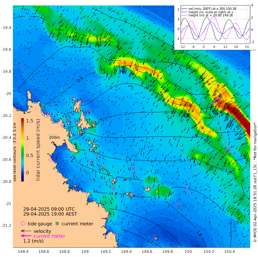 34cm/s 169T +10cm/s rms + 2cm/s 5T. Brampton I 18m 36cm/s 178T +9cm/s rms + 6cm/s 66T. Wigton I 38m 30cm/s -148T +7cm/s rms + 8cm/s 141T. Tern I 47m 58cm/s -157T +7cm/s rms + 12cm/s 54T. N Bugatti Rf 64m 63cm/s -144T +3cm/s rms + 13cm/s 178T. W Bugatti Rf 70m 29cm/s -150T +3cm/s rms + 3cm/s -130T. Creal Rf 69m -45cm Holbourne I -150cm Tern I -53cm Bugatti Rf -94cm Creal Rf -23cm White Tip I -34cm Wallaby Reef -20cm Kennedy Reef -3cm Unnamed Reef No. 2 -81cm Tideway Reef -65cm Hayman Island -106cm Square Reef -76cm Double Bay -107cm Molle Island -103cm Cid Harbour -76cm Hook Island -96cm Border Island -111cm Haslewood Island -103cm Shute Harbour -139cm Thomas Island -129cm Credlin Reef -163cm East Repulse Island -158cm Blacksmith Island -178cm Laguna Quays -160cm Carlisle Island (Off) -178cm St. Bees Island -161cm Scawfell Island -160cm Penrith Island -196cm Mackay Outer Harbour -205cm Hay Point -187cm Prudhoe Island