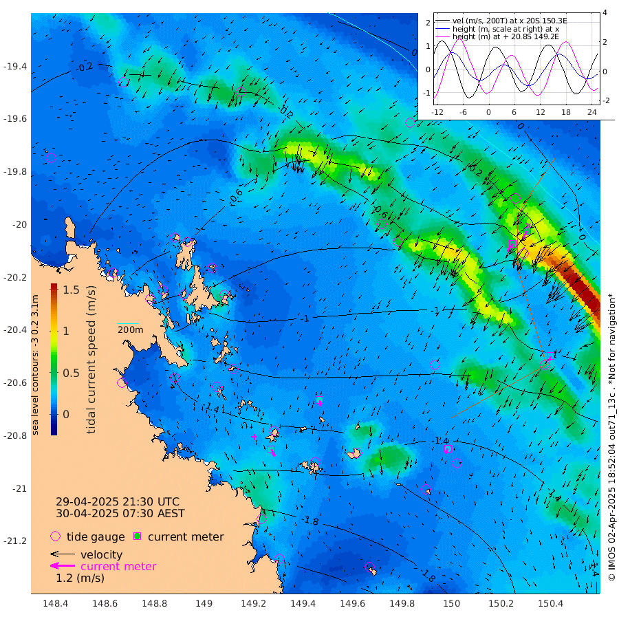 35cm/s 154T +10cm/s rms + 2cm/s 5T. Brampton I 18m 30cm/s 172T +9cm/s rms + 6cm/s 66T. Wigton I 38m 28cm/s -160T +7cm/s rms + 8cm/s 141T. Tern I 47m 45cm/s -154T +7cm/s rms + 12cm/s 54T. N Bugatti Rf 64m 45cm/s -145T +3cm/s rms + 13cm/s 178T. W Bugatti Rf 70m 25cm/s -156T +3cm/s rms + 3cm/s -130T. Creal Rf 69m -36cm Holbourne I -140cm Tern I -53cm Bugatti Rf -90cm Creal Rf -27cm White Tip I -26cm Wallaby Reef -15cm Kennedy Reef -11cm Unnamed Reef No. 2 -71cm Tideway Reef -60cm Hayman Island -91cm Square Reef -66cm Double Bay -84cm Molle Island -86cm Cid Harbour -68cm Hook Island -83cm Border Island -92cm Haslewood Island -89cm Shute Harbour -123cm Thomas Island -123cm Credlin Reef -147cm East Repulse Island -132cm Blacksmith Island -154cm Laguna Quays -144cm Carlisle Island (Off) -157cm St. Bees Island -142cm Scawfell Island -146cm Penrith Island -179cm Mackay Outer Harbour -190cm Hay Point -176cm Prudhoe Island