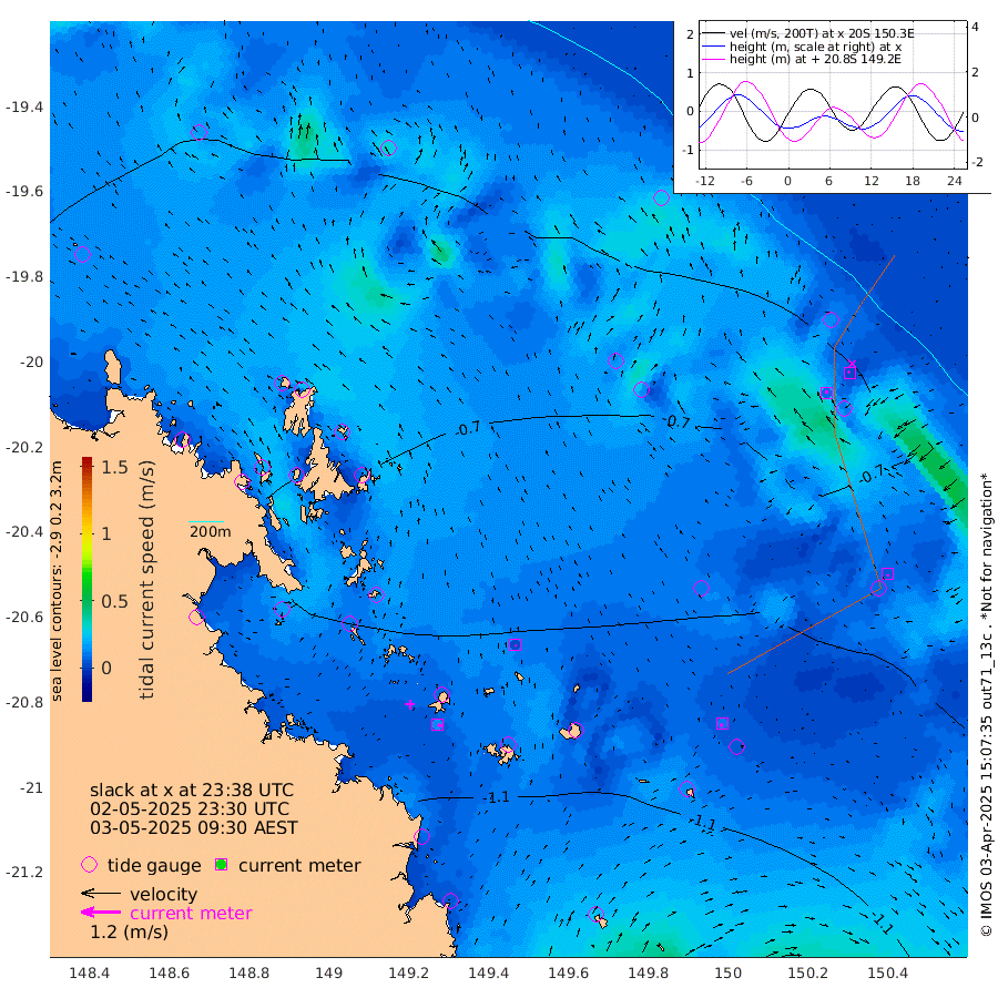 13cm/s 115T +10cm/s rms + 2cm/s 5T. Brampton I 18m 2cm/s 149T +9cm/s rms + 6cm/s 66T. Wigton I 38m 10cm/s -173T +7cm/s rms + 8cm/s 141T. Tern I 47m 4cm/s -45T +7cm/s rms + 12cm/s 54T. N Bugatti Rf 64m 7cm/s -2T +3cm/s rms + 13cm/s 178T. W Bugatti Rf 70m 6cm/s -153T +3cm/s rms + 3cm/s -130T. Creal Rf 69m -53cm Holbourne I -106cm Tern I -57cm Bugatti Rf -73cm Creal Rf -46cm White Tip I -44cm Wallaby Reef -39cm Kennedy Reef -43cm Unnamed Reef No. 2 -64cm Tideway Reef -67cm Hayman Island -71cm Square Reef -85cm Double Bay -81cm Molle Island -66cm Cid Harbour -69cm Hook Island -60cm Border Island -68cm Haslewood Island -75cm Shute Harbour -88cm Thomas Island -92cm Credlin Reef -104cm East Repulse Island -85cm Blacksmith Island -101cm Laguna Quays -104cm Carlisle Island (Off) -107cm St. Bees Island -97cm Scawfell Island -110cm Penrith Island -121cm Mackay Outer Harbour -130cm Hay Point -128cm Prudhoe Island