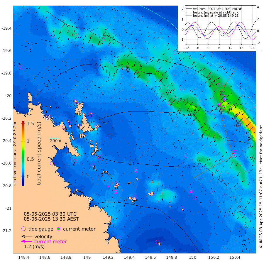 20cm/s 161T +10cm/s rms + 2cm/s 5T. Brampton I 18m 19cm/s 176T +9cm/s rms + 6cm/s 66T. Wigton I 38m 16cm/s -154T +7cm/s rms + 8cm/s 141T. Tern I 47m 25cm/s -151T +7cm/s rms + 12cm/s 54T. N Bugatti Rf 64m 22cm/s -132T +3cm/s rms + 13cm/s 178T. W Bugatti Rf 70m 14cm/s -139T +3cm/s rms + 3cm/s -130T. Creal Rf 69m -67cm Holbourne I -121cm Tern I -72cm Bugatti Rf -92cm Creal Rf -58cm White Tip I -68cm Wallaby Reef -43cm Kennedy Reef -48cm Unnamed Reef No. 2 -94cm Tideway Reef -85cm Hayman Island -116cm Square Reef -95cm Double Bay -108cm Molle Island -101cm Cid Harbour -85cm Hook Island -92cm Border Island -104cm Haslewood Island -102cm Shute Harbour -119cm Thomas Island -122cm Credlin Reef -136cm East Repulse Island -122cm Blacksmith Island -137cm Laguna Quays -132cm Carlisle Island (Off) -145cm St. Bees Island -129cm Scawfell Island -130cm Penrith Island -145cm Mackay Outer Harbour -149cm Hay Point -148cm Prudhoe Island