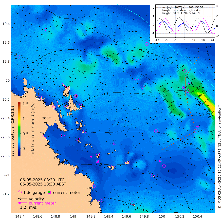 13cm/s 152T +10cm/s rms + 2cm/s 5T. Brampton I 18m 9cm/s -169T +9cm/s rms + 6cm/s 66T. Wigton I 38m 15cm/s -150T +7cm/s rms + 8cm/s 141T. Tern I 47m 13cm/s -132T +7cm/s rms + 12cm/s 54T. N Bugatti Rf 64m 9cm/s -87T +3cm/s rms + 13cm/s 178T. W Bugatti Rf 70m 12cm/s -120T +3cm/s rms + 3cm/s -130T. Creal Rf 69m -90cm Holbourne I -158cm Tern I -93cm Bugatti Rf -118cm Creal Rf -75cm White Tip I -86cm Wallaby Reef -66cm Kennedy Reef -68cm Unnamed Reef No. 2 -115cm Tideway Reef -108cm Hayman Island -140cm Square Reef -125cm Double Bay -131cm Molle Island -122cm Cid Harbour -109cm Hook Island -110cm Border Island -123cm Haslewood Island -126cm Shute Harbour -145cm Thomas Island -149cm Credlin Reef -162cm East Repulse Island -146cm Blacksmith Island -163cm Laguna Quays -161cm Carlisle Island (Off) -174cm St. Bees Island -153cm Scawfell Island -163cm Penrith Island -179cm Mackay Outer Harbour -188cm Hay Point -192cm Prudhoe Island