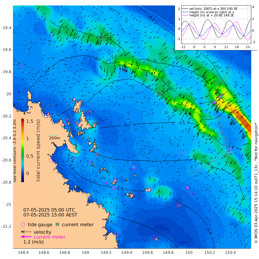 24cm/s 168T +10cm/s rms + 2cm/s 5T. Brampton I 18m 22cm/s -180T +9cm/s rms + 6cm/s 66T. Wigton I 38m 21cm/s -148T +7cm/s rms + 8cm/s 141T. Tern I 47m 35cm/s -154T +7cm/s rms + 12cm/s 54T. N Bugatti Rf 64m 34cm/s -135T +3cm/s rms + 13cm/s 178T. W Bugatti Rf 70m 20cm/s -139T +3cm/s rms + 3cm/s -130T. Creal Rf 69m -70cm Holbourne I -148cm Tern I -77cm Bugatti Rf -107cm Creal Rf -55cm White Tip I -66cm Wallaby Reef -41cm Kennedy Reef -42cm Unnamed Reef No. 2 -102cm Tideway Reef -85cm Hayman Island -129cm Square Reef -103cm Double Bay -116cm Molle Island -111cm Cid Harbour -93cm Hook Island -101cm Border Island -117cm Haslewood Island -114cm Shute Harbour -140cm Thomas Island -138cm Credlin Reef -156cm East Repulse Island -144cm Blacksmith Island -163cm Laguna Quays -154cm Carlisle Island (Off) -170cm St. Bees Island -149cm Scawfell Island -151cm Penrith Island -177cm Mackay Outer Harbour -184cm Hay Point -185cm Prudhoe Island