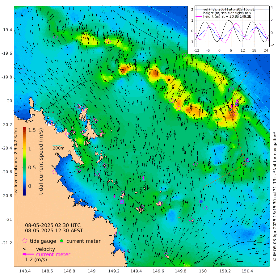 25cm/s 2T +10cm/s rms + 2cm/s 5T. Brampton I 18m 35cm/s -11T +9cm/s rms + 6cm/s 66T. Wigton I 38m 8cm/s 22T +7cm/s rms + 8cm/s 141T. Tern I 47m 48cm/s 11T +7cm/s rms + 12cm/s 54T. N Bugatti Rf 64m 61cm/s 27T +3cm/s rms + 13cm/s 178T. W Bugatti Rf 70m 20cm/s 1T +3cm/s rms + 3cm/s -130T. Creal Rf 69m -95cm Holbourne I -115cm Tern I -87cm Bugatti Rf -93cm Creal Rf -85cm White Tip I -89cm Wallaby Reef -97cm Kennedy Reef -91cm Unnamed Reef No. 2 -88cm Tideway Reef -98cm Hayman Island -102cm Square Reef -103cm Double Bay -100cm Molle Island -87cm Cid Harbour -92cm Hook Island -77cm Border Island -76cm Haslewood Island -91cm Shute Harbour -90cm Thomas Island -102cm Credlin Reef -90cm East Repulse Island -86cm Blacksmith Island -85cm Laguna Quays -94cm Carlisle Island (Off) -94cm St. Bees Island -85cm Scawfell Island -115cm Penrith Island -104cm Mackay Outer Harbour -113cm Hay Point -126cm Prudhoe Island