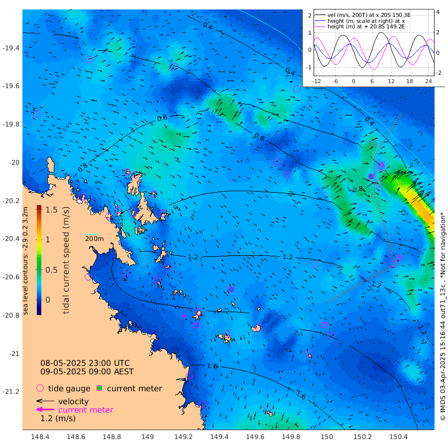 9cm/s 0T +10cm/s rms + 2cm/s 5T. Brampton I 18m 7cm/s 45T +9cm/s rms + 6cm/s 66T. Wigton I 38m 17cm/s 40T +7cm/s rms + 8cm/s 141T. Tern I 47m 17cm/s 42T +7cm/s rms + 12cm/s 54T. N Bugatti Rf 64m 10cm/s 75T +3cm/s rms + 13cm/s 178T. W Bugatti Rf 70m 15cm/s 67T +3cm/s rms + 3cm/s -130T. Creal Rf 69m 78cm Holbourne I 158cm Tern I 76cm Bugatti Rf 111cm Creal Rf 53cm White Tip I 62cm Wallaby Reef 47cm Kennedy Reef 42cm Unnamed Reef No. 2 97cm Tideway Reef 84cm Hayman Island 127cm Square Reef 106cm Double Bay 102cm Molle Island 103cm Cid Harbour 94cm Hook Island 97cm Border Island 109cm Haslewood Island 110cm Shute Harbour 134cm Thomas Island 137cm Credlin Reef 144cm East Repulse Island 135cm Blacksmith Island 157cm Laguna Quays 151cm Carlisle Island (Off) 167cm St. Bees Island 148cm Scawfell Island 156cm Penrith Island 179cm Mackay Outer Harbour 190cm Hay Point 202cm Prudhoe Island
