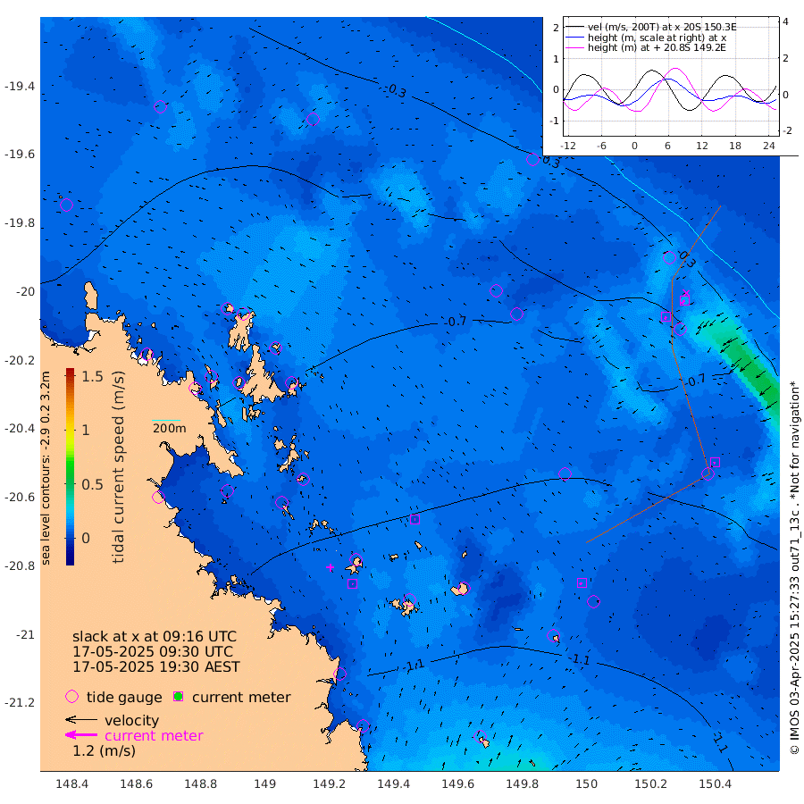 3cm/s 162T +10cm/s rms + 2cm/s 5T. Brampton I 18m 3cm/s -110T +9cm/s rms + 6cm/s 66T. Wigton I 38m 9cm/s -146T +7cm/s rms + 8cm/s 141T. Tern I 47m 15cm/s -144T +7cm/s rms + 12cm/s 54T. N Bugatti Rf 64m 10cm/s -151T +3cm/s rms + 13cm/s 178T. W Bugatti Rf 70m 7cm/s -110T +3cm/s rms + 3cm/s -130T. Creal Rf 69m -54cm Holbourne I -107cm Tern I -55cm Bugatti Rf -75cm Creal Rf -40cm White Tip I -45cm Wallaby Reef -45cm Kennedy Reef -31cm Unnamed Reef No. 2 -64cm Tideway Reef -64cm Hayman Island -83cm Square Reef -62cm Double Bay -82cm Molle Island -82cm Cid Harbour -65cm Hook Island -77cm Border Island -80cm Haslewood Island -77cm Shute Harbour -90cm Thomas Island -95cm Credlin Reef -103cm East Repulse Island -110cm Blacksmith Island -110cm Laguna Quays -109cm Carlisle Island (Off) -122cm St. Bees Island -116cm Scawfell Island -121cm Penrith Island -125cm Mackay Outer Harbour -132cm Hay Point -119cm Prudhoe Island