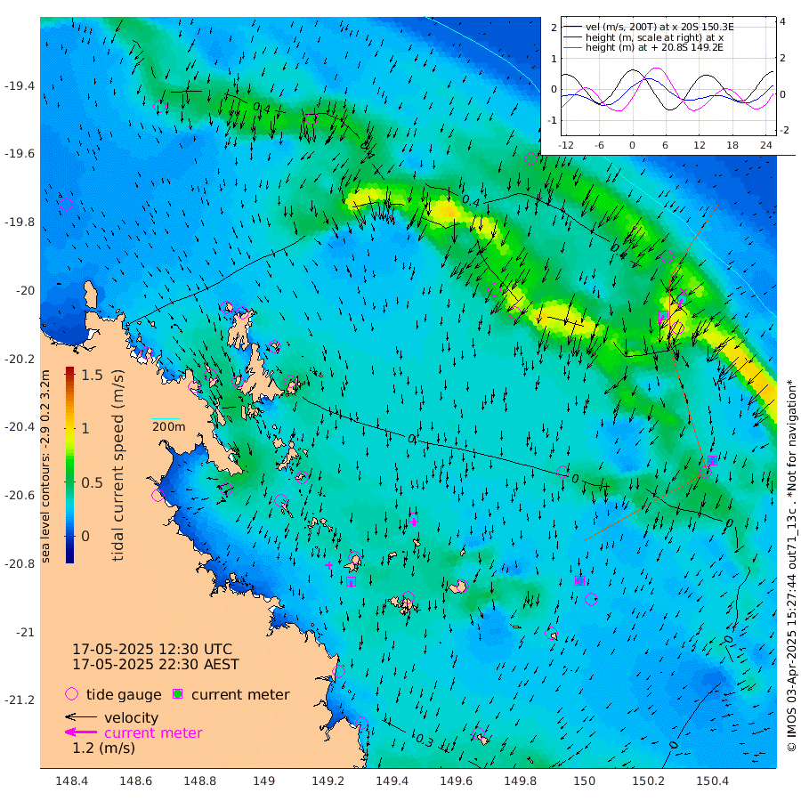 21cm/s -178T +10cm/s rms + 2cm/s 5T. Brampton I 18m 31cm/s 176T +9cm/s rms + 6cm/s 66T. Wigton I 38m 14cm/s -144T +7cm/s rms + 8cm/s 141T. Tern I 47m 33cm/s -160T +7cm/s rms + 12cm/s 54T. N Bugatti Rf 64m 37cm/s -148T +3cm/s rms + 13cm/s 178T. W Bugatti Rf 70m 15cm/s -165T +3cm/s rms + 3cm/s -130T. Creal Rf 69m 23cm Holbourne I 16cm Tern I 30cm Bugatti Rf 23cm Creal Rf 37cm White Tip I 29cm Wallaby Reef 30cm Kennedy Reef 46cm Unnamed Reef No. 2 14cm Tideway Reef 21cm Hayman Island 13cm Square Reef 18cm Double Bay 11cm Molle Island 18cm Cid Harbour 15cm Hook Island 10cm Border Island 12cm Haslewood Island 11cm Shute Harbour 4cm Thomas Island 19cm Credlin Reef 6cm East Repulse Island 4cm Blacksmith Island -11cm Laguna Quays 9cm Carlisle Island (Off) 5cm St. Bees Island 5cm Scawfell Island 10cm Penrith Island -3cm Mackay Outer Harbour -1cm Hay Point 1cm Prudhoe Island