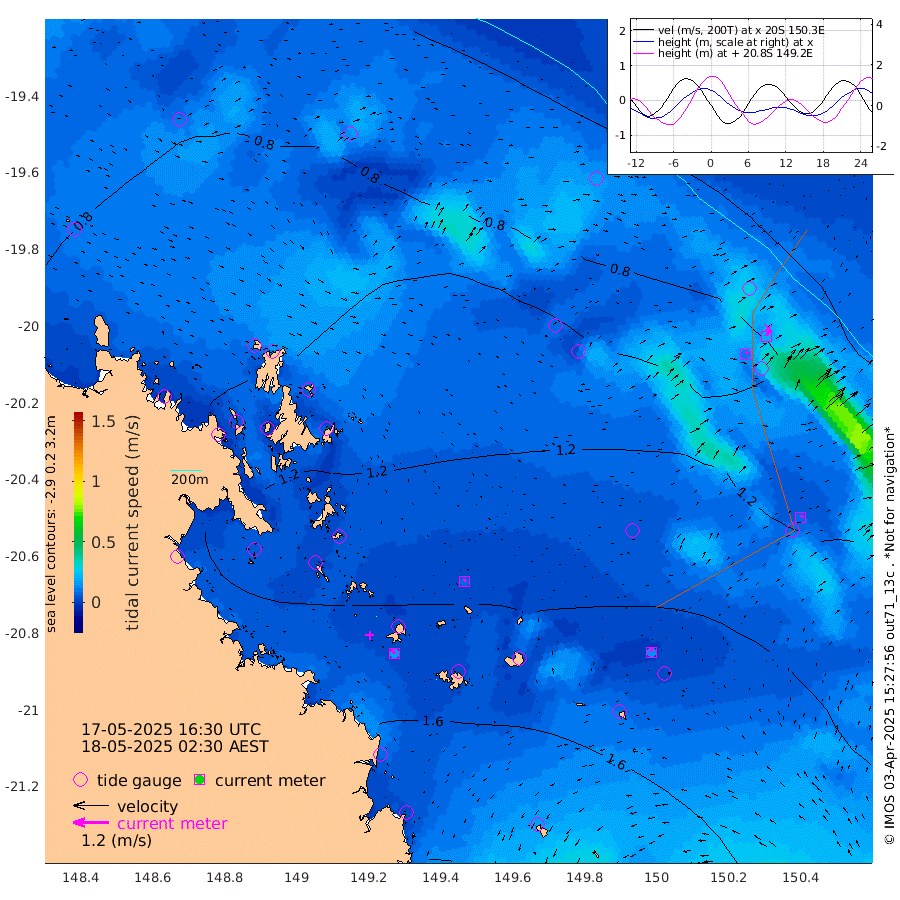 16cm/s -40T +10cm/s rms + 2cm/s 5T. Brampton I 18m 9cm/s -6T +9cm/s rms + 6cm/s 66T. Wigton I 38m 14cm/s 16T +7cm/s rms + 8cm/s 141T. Tern I 47m 20cm/s 35T +7cm/s rms + 12cm/s 54T. N Bugatti Rf 64m 12cm/s 28T +3cm/s rms + 13cm/s 178T. W Bugatti Rf 70m 8cm/s 38T +3cm/s rms + 3cm/s -130T. Creal Rf 69m 91cm Holbourne I 154cm Tern I 96cm Bugatti Rf 116cm Creal Rf 80cm White Tip I 85cm Wallaby Reef 79cm Kennedy Reef 70cm Unnamed Reef No. 2 110cm Tideway Reef 108cm Hayman Island 135cm Square Reef 106cm Double Bay 140cm Molle Island 124cm Cid Harbour 106cm Hook Island 121cm Border Island 120cm Haslewood Island 122cm Shute Harbour 138cm Thomas Island 145cm Credlin Reef 151cm East Repulse Island 154cm Blacksmith Island 159cm Laguna Quays 155cm Carlisle Island (Off) 157cm St. Bees Island 153cm Scawfell Island 171cm Penrith Island 177cm Mackay Outer Harbour 185cm Hay Point 173cm Prudhoe Island
