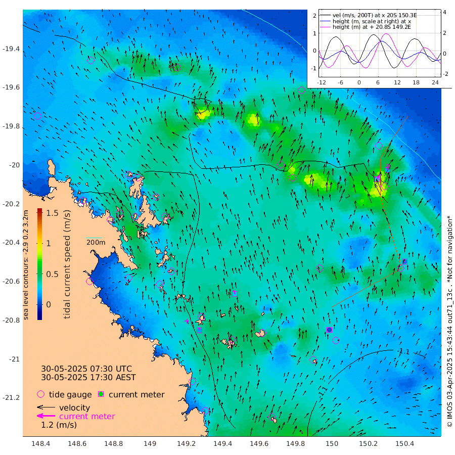 18cm/s -8T +10cm/s rms + 2cm/s 5T. Brampton I 18m 26cm/s -16T +9cm/s rms + 6cm/s 66T. Wigton I 38m 3cm/s -4T +7cm/s rms + 8cm/s 141T. Tern I 47m 18cm/s -5T +7cm/s rms + 12cm/s 54T. N Bugatti Rf 64m 29cm/s 27T +3cm/s rms + 13cm/s 178T. W Bugatti Rf 70m 12cm/s -12T +3cm/s rms + 3cm/s -130T. Creal Rf 69m -99cm Holbourne I -133cm Tern I -90cm Bugatti Rf -105cm Creal Rf -82cm White Tip I -85cm Wallaby Reef -92cm Kennedy Reef -83cm Unnamed Reef No. 2 -95cm Tideway Reef -93cm Hayman Island -114cm Square Reef -106cm Double Bay -105cm Molle Island -98cm Cid Harbour -102cm Hook Island -94cm Border Island -95cm Haslewood Island -101cm Shute Harbour -105cm Thomas Island -119cm Credlin Reef -112cm East Repulse Island -107cm Blacksmith Island -111cm Laguna Quays -123cm Carlisle Island (Off) -127cm St. Bees Island -110cm Scawfell Island -131cm Penrith Island -130cm Mackay Outer Harbour -139cm Hay Point -147cm Prudhoe Island
