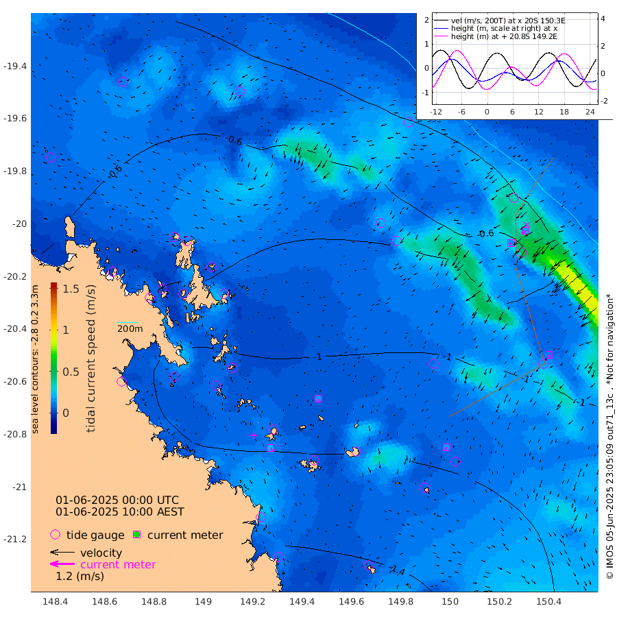 22cm/s 143T +10cm/s rms + 2cm/s 5T. Brampton I 18m 18cm/s 172T +9cm/s rms + 6cm/s 66T. Wigton I 38m 17cm/s -162T +7cm/s rms + 8cm/s 141T. Tern I 47m 18cm/s -147T +7cm/s rms + 12cm/s 54T. N Bugatti Rf 64m 14cm/s -131T +3cm/s rms + 13cm/s 178T. W Bugatti Rf 70m 12cm/s -152T +3cm/s rms + 3cm/s -130T. Creal Rf 69m -61cm Holbourne I -120cm Tern I -66cm Bugatti Rf -86cm Creal Rf -52cm White Tip I -54cm Wallaby Reef -41cm Kennedy Reef -45cm Unnamed Reef No. 2 -82cm Tideway Reef -81cm Hayman Island -95cm Square Reef -96cm Double Bay -103cm Molle Island -85cm Cid Harbour -82cm Hook Island -79cm Border Island -89cm Haslewood Island -93cm Shute Harbour -111cm Thomas Island -111cm Credlin Reef -128cm East Repulse Island -110cm Blacksmith Island -129cm Laguna Quays -125cm Carlisle Island (Off) -132cm St. Bees Island -116cm Scawfell Island -128cm Penrith Island -145cm Mackay Outer Harbour -152cm Hay Point -148cm Prudhoe Island