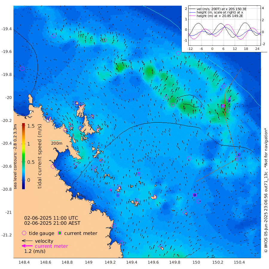 10cm/s -5T +10cm/s rms + 2cm/s 5T. Brampton I 18m 13cm/s -18T +9cm/s rms + 6cm/s 66T. Wigton I 38m 1cm/s -89T +7cm/s rms + 8cm/s 141T. Tern I 47m 12cm/s -5T +7cm/s rms + 12cm/s 54T. N Bugatti Rf 64m 20cm/s 32T +3cm/s rms + 13cm/s 178T. W Bugatti Rf 70m 7cm/s -9T +3cm/s rms + 3cm/s -130T. Creal Rf 69m -50cm Holbourne I -67cm Tern I -40cm Bugatti Rf -48cm Creal Rf -35cm White Tip I -35cm Wallaby Reef -44cm Kennedy Reef -36cm Unnamed Reef No. 2 -44cm Tideway Reef -47cm Hayman Island -51cm Square Reef -58cm Double Bay -49cm Molle Island -40cm Cid Harbour -53cm Hook Island -43cm Border Island -42cm Haslewood Island -49cm Shute Harbour -49cm Thomas Island -57cm Credlin Reef -53cm East Repulse Island -45cm Blacksmith Island -55cm Laguna Quays -63cm Carlisle Island (Off) -61cm St. Bees Island -50cm Scawfell Island -69cm Penrith Island -68cm Mackay Outer Harbour -74cm Hay Point -81cm Prudhoe Island