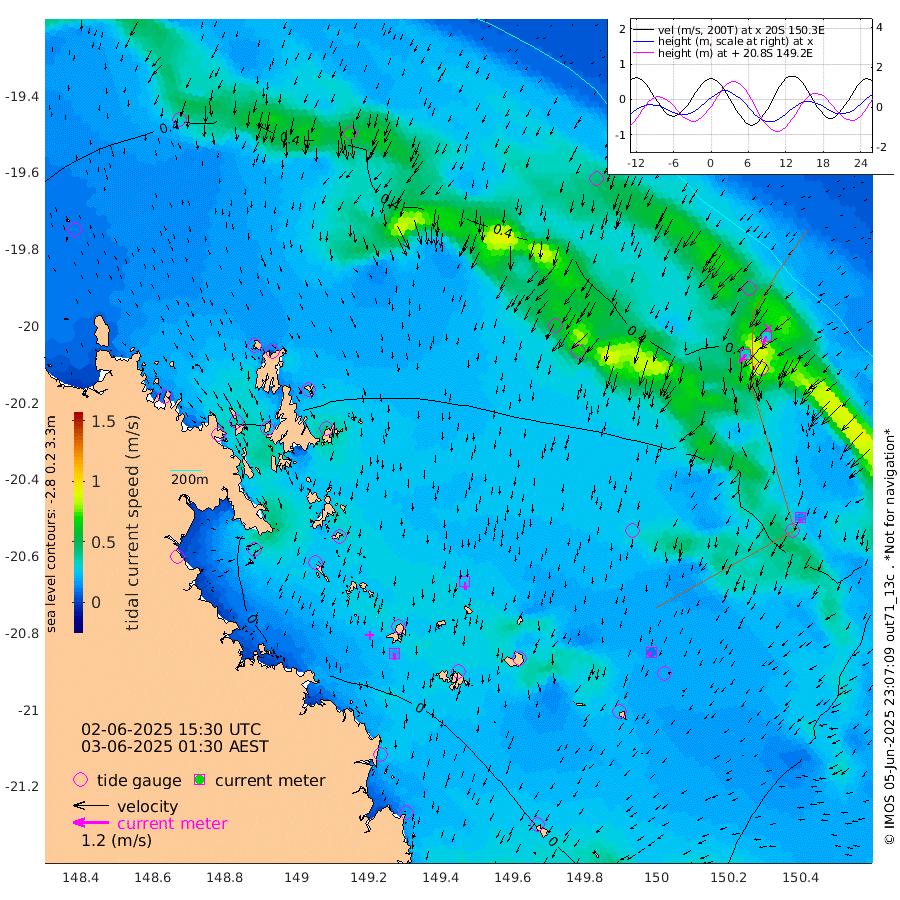 19cm/s -178T +10cm/s rms + 2cm/s 5T. Brampton I 18m 26cm/s 177T +9cm/s rms + 6cm/s 66T. Wigton I 38m 12cm/s -139T +7cm/s rms + 8cm/s 141T. Tern I 47m 32cm/s -159T +7cm/s rms + 12cm/s 54T. N Bugatti Rf 64m 35cm/s -145T +3cm/s rms + 13cm/s 178T. W Bugatti Rf 70m 14cm/s -155T +3cm/s rms + 3cm/s -130T. Creal Rf 69m 43cm Holbourne I 30cm Tern I 41cm Bugatti Rf 34cm Creal Rf 47cm White Tip I 38cm Wallaby Reef 47cm Kennedy Reef 51cm Unnamed Reef No. 2 26cm Tideway Reef 36cm Hayman Island 29cm Square Reef 41cm Double Bay 40cm Molle Island 20cm Cid Harbour 35cm Hook Island 20cm Border Island 16cm Haslewood Island 24cm Shute Harbour 14cm Thomas Island 23cm Credlin Reef 3cm East Repulse Island 11cm Blacksmith Island 6cm Laguna Quays 14cm Carlisle Island (Off) 7cm St. Bees Island 15cm Scawfell Island 33cm Penrith Island 15cm Mackay Outer Harbour 18cm Hay Point 25cm Prudhoe Island