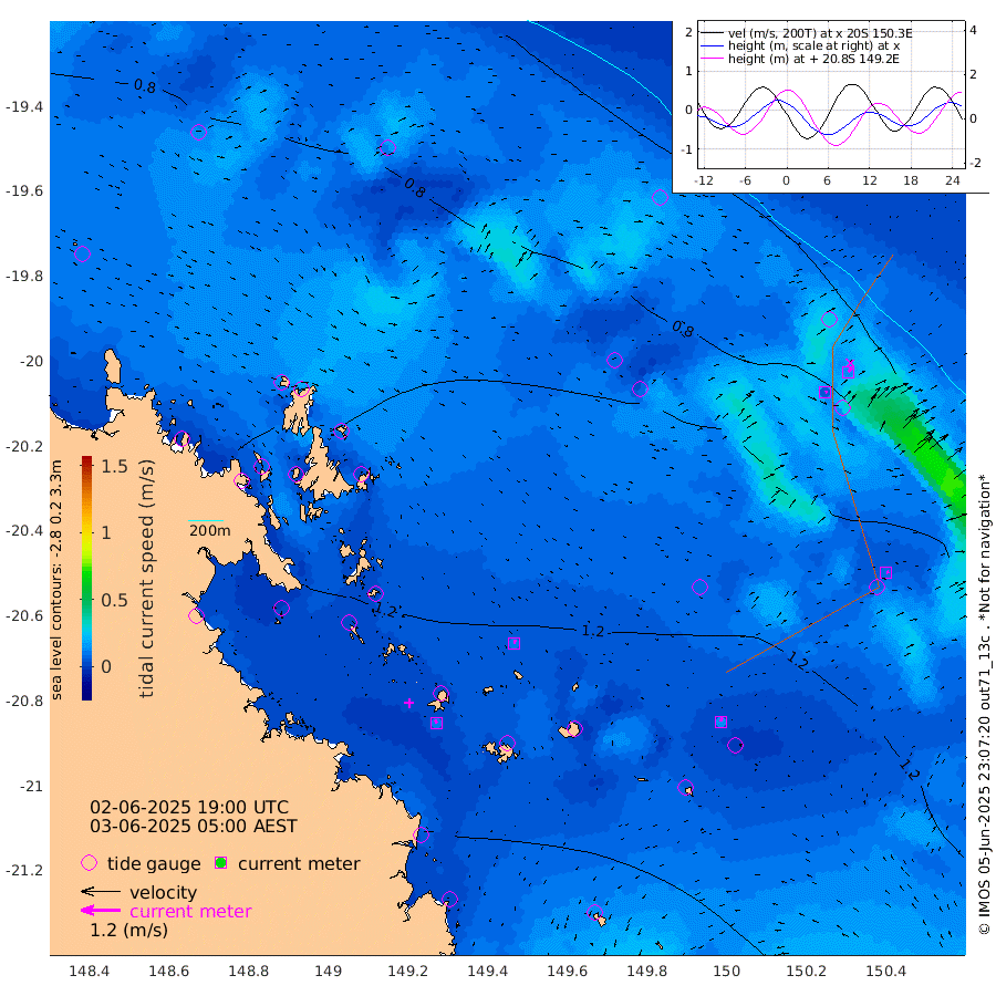 10cm/s -28T +10cm/s rms + 2cm/s 5T. Brampton I 18m 10cm/s 6T +9cm/s rms + 6cm/s 66T. Wigton I 38m 13cm/s 26T +7cm/s rms + 8cm/s 141T. Tern I 47m 15cm/s 45T +7cm/s rms + 12cm/s 54T. N Bugatti Rf 64m 6cm/s 72T +3cm/s rms + 13cm/s 178T. W Bugatti Rf 70m 8cm/s 60T +3cm/s rms + 3cm/s -130T. Creal Rf 69m 95cm Holbourne I 139cm Tern I 88cm Bugatti Rf 106cm Creal Rf 74cm White Tip I 83cm Wallaby Reef 70cm Kennedy Reef 69cm Unnamed Reef No. 2 108cm Tideway Reef 103cm Hayman Island 127cm Square Reef 126cm Double Bay 130cm Molle Island 107cm Cid Harbour 110cm Hook Island 105cm Border Island 113cm Haslewood Island 117cm Shute Harbour 126cm Thomas Island 133cm Credlin Reef 143cm East Repulse Island 124cm Blacksmith Island 146cm Laguna Quays 148cm Carlisle Island (Off) 151cm St. Bees Island 132cm Scawfell Island 146cm Penrith Island 158cm Mackay Outer Harbour 165cm Hay Point 169cm Prudhoe Island