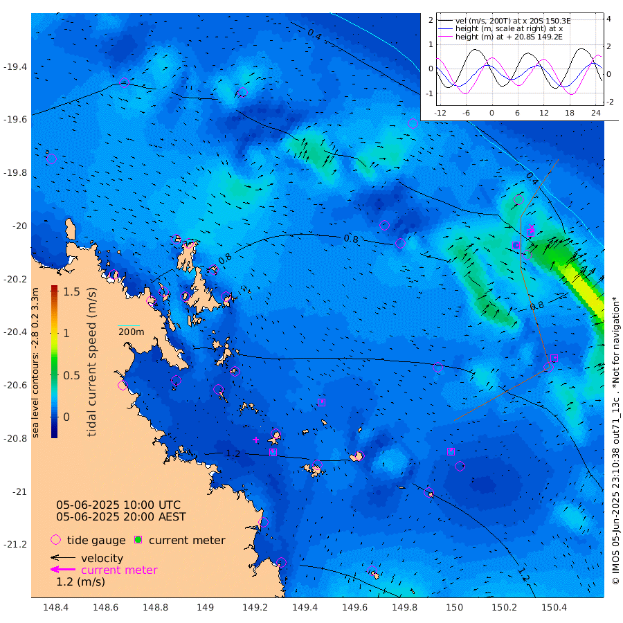 15cm/s -34T +10cm/s rms + 2cm/s 5T. Brampton I 18m 11cm/s 11T +9cm/s rms + 6cm/s 66T. Wigton I 38m 14cm/s 24T +7cm/s rms + 8cm/s 141T. Tern I 47m 15cm/s 53T +7cm/s rms + 12cm/s 54T. N Bugatti Rf 64m 8cm/s 93T +3cm/s rms + 13cm/s 178T. W Bugatti Rf 70m 10cm/s 44T +3cm/s rms + 3cm/s -130T. Creal Rf 69m 66cm Holbourne I 125cm Tern I 66cm Bugatti Rf 88cm Creal Rf 50cm White Tip I 57cm Wallaby Reef 53cm Kennedy Reef 46cm Unnamed Reef No. 2 85cm Tideway Reef 76cm Hayman Island 100cm Square Reef 89cm Double Bay 89cm Molle Island 87cm Cid Harbour 84cm Hook Island 80cm Border Island 85cm Haslewood Island 93cm Shute Harbour 114cm Thomas Island 112cm Credlin Reef 126cm East Repulse Island 109cm Blacksmith Island 126cm Laguna Quays 120cm Carlisle Island (Off) 135cm St. Bees Island 109cm Scawfell Island 116cm Penrith Island 141cm Mackay Outer Harbour 149cm Hay Point 154cm Prudhoe Island