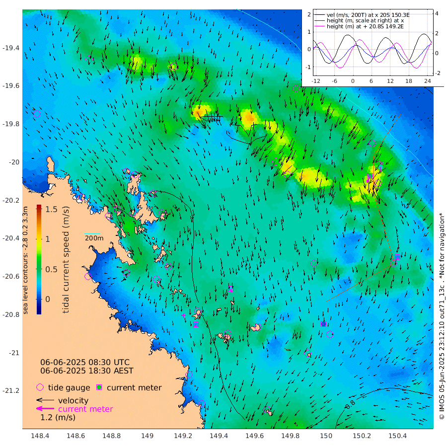16cm/s -160T +10cm/s rms + 2cm/s 5T. Brampton I 18m 24cm/s 167T +9cm/s rms + 6cm/s 66T. Wigton I 38m 4cm/s -117T +7cm/s rms + 8cm/s 141T. Tern I 47m 32cm/s -177T +7cm/s rms + 12cm/s 54T. N Bugatti Rf 64m 49cm/s -151T +3cm/s rms + 13cm/s 178T. W Bugatti Rf 70m 14cm/s -180T +3cm/s rms + 3cm/s -130T. Creal Rf 69m 74cm Holbourne I 102cm Tern I 68cm Bugatti Rf 78cm Creal Rf 63cm White Tip I 62cm Wallaby Reef 76cm Kennedy Reef 66cm Unnamed Reef No. 2 68cm Tideway Reef 78cm Hayman Island 81cm Square Reef 79cm Double Bay 69cm Molle Island 67cm Cid Harbour 76cm Hook Island 62cm Border Island 57cm Haslewood Island 73cm Shute Harbour 77cm Thomas Island 87cm Credlin Reef 78cm East Repulse Island 73cm Blacksmith Island 76cm Laguna Quays 81cm Carlisle Island (Off) 93cm St. Bees Island 78cm Scawfell Island 96cm Penrith Island 96cm Mackay Outer Harbour 104cm Hay Point 116cm Prudhoe Island