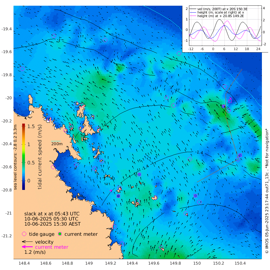 3cm/s -21T +10cm/s rms + 2cm/s 5T. Brampton I 18m 11cm/s -33T +9cm/s rms + 6cm/s 66T. Wigton I 38m 8cm/s -142T +7cm/s rms + 8cm/s 141T. Tern I 47m 10cm/s -79T +7cm/s rms + 12cm/s 54T. N Bugatti Rf 64m 10cm/s -1T +3cm/s rms + 13cm/s 178T. W Bugatti Rf 70m 8cm/s -64T +3cm/s rms + 3cm/s -130T. Creal Rf 69m -108cm Holbourne I -175cm Tern I -105cm Bugatti Rf -132cm Creal Rf -86cm White Tip I -96cm Wallaby Reef -96cm Kennedy Reef -77cm Unnamed Reef No. 2 -118cm Tideway Reef -114cm Hayman Island -153cm Square Reef -116cm Double Bay -138cm Molle Island -132cm Cid Harbour -119cm Hook Island -123cm Border Island -125cm Haslewood Island -131cm Shute Harbour -147cm Thomas Island -154cm Credlin Reef -154cm East Repulse Island -159cm Blacksmith Island -165cm Laguna Quays -161cm Carlisle Island (Off) -177cm St. Bees Island -165cm Scawfell Island -178cm Penrith Island -186cm Mackay Outer Harbour -196cm Hay Point -199cm Prudhoe Island