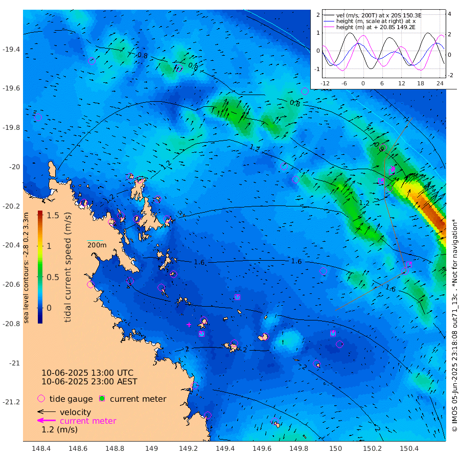 22cm/s -29T +10cm/s rms + 2cm/s 5T. Brampton I 18m 16cm/s 4T +9cm/s rms + 6cm/s 66T. Wigton I 38m 20cm/s 18T +7cm/s rms + 8cm/s 141T. Tern I 47m 32cm/s 36T +7cm/s rms + 12cm/s 54T. N Bugatti Rf 64m 20cm/s 43T +3cm/s rms + 13cm/s 178T. W Bugatti Rf 70m 15cm/s 34T +3cm/s rms + 3cm/s -130T. Creal Rf 69m 110cm Holbourne I 196cm Tern I 113cm Bugatti Rf 146cm Creal Rf 90cm White Tip I 94cm Wallaby Reef 88cm Kennedy Reef 74cm Unnamed Reef No. 2 133cm Tideway Reef 122cm Hayman Island 169cm Square Reef 135cm Double Bay 152cm Molle Island 140cm Cid Harbour 133cm Hook Island 136cm Border Island 138cm Haslewood Island 146cm Shute Harbour 174cm Thomas Island 175cm Credlin Reef 180cm East Repulse Island 182cm Blacksmith Island 199cm Laguna Quays 184cm Carlisle Island (Off) 211cm St. Bees Island 189cm Scawfell Island 199cm Penrith Island 223cm Mackay Outer Harbour 234cm Hay Point 239cm Prudhoe Island