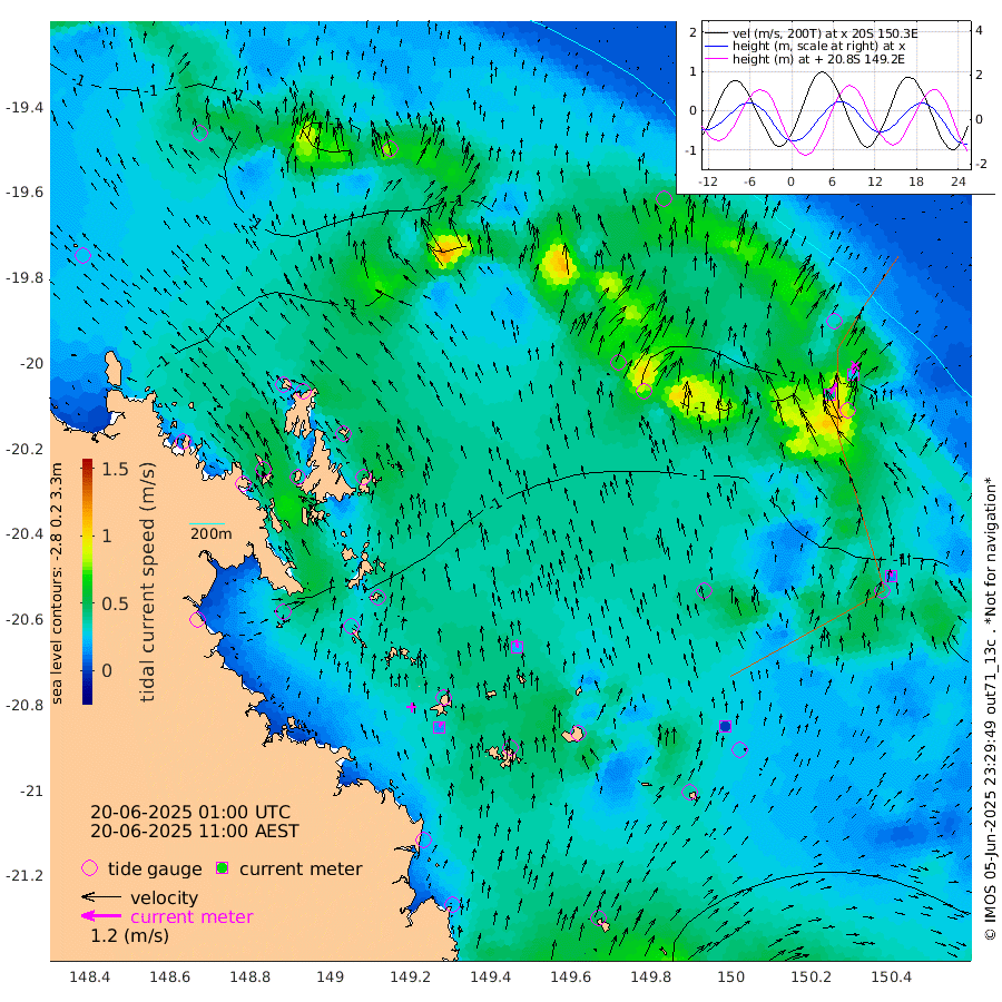 16cm/s 21T +10cm/s rms + 2cm/s 5T. Brampton I 18m 23cm/s -13T +9cm/s rms + 6cm/s 66T. Wigton I 38m 1cm/s 106T +7cm/s rms + 8cm/s 141T. Tern I 47m 28cm/s 2T +7cm/s rms + 12cm/s 54T. N Bugatti Rf 64m 40cm/s 26T +3cm/s rms + 13cm/s 178T. W Bugatti Rf 70m 14cm/s -9T +3cm/s rms + 3cm/s -130T. Creal Rf 69m -97cm Holbourne I -142cm Tern I -97cm Bugatti Rf -110cm Creal Rf -88cm White Tip I -92cm Wallaby Reef -93cm Kennedy Reef -89cm Unnamed Reef No. 2 -100cm Tideway Reef -114cm Hayman Island -115cm Square Reef -117cm Double Bay -125cm Molle Island -113cm Cid Harbour -105cm Hook Island -97cm Border Island -105cm Haslewood Island -112cm Shute Harbour -117cm Thomas Island -130cm Credlin Reef -136cm East Repulse Island -127cm Blacksmith Island -125cm Laguna Quays -138cm Carlisle Island (Off) -149cm St. Bees Island -133cm Scawfell Island -150cm Penrith Island -146cm Mackay Outer Harbour -156cm Hay Point -149cm Prudhoe Island