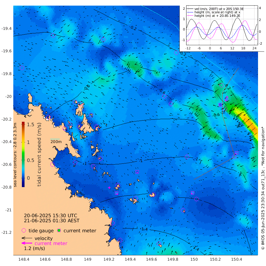 15cm/s 156T +10cm/s rms + 2cm/s 5T. Brampton I 18m 10cm/s -165T +9cm/s rms + 6cm/s 66T. Wigton I 38m 17cm/s -150T +7cm/s rms + 8cm/s 141T. Tern I 47m 21cm/s -140T +7cm/s rms + 12cm/s 54T. N Bugatti Rf 64m 9cm/s -127T +3cm/s rms + 13cm/s 178T. W Bugatti Rf 70m 14cm/s -125T +3cm/s rms + 3cm/s -130T. Creal Rf 69m -45cm Holbourne I -128cm Tern I -51cm Bugatti Rf -82cm Creal Rf -30cm White Tip I -39cm Wallaby Reef -30cm Kennedy Reef -20cm Unnamed Reef No. 2 -70cm Tideway Reef -65cm Hayman Island -93cm Square Reef -57cm Double Bay -70cm Molle Island -90cm Cid Harbour -61cm Hook Island -84cm Border Island -87cm Haslewood Island -86cm Shute Harbour -111cm Thomas Island -115cm Credlin Reef -130cm East Repulse Island -124cm Blacksmith Island -132cm Laguna Quays -127cm Carlisle Island (Off) -141cm St. Bees Island -130cm Scawfell Island -131cm Penrith Island -152cm Mackay Outer Harbour -161cm Hay Point -154cm Prudhoe Island