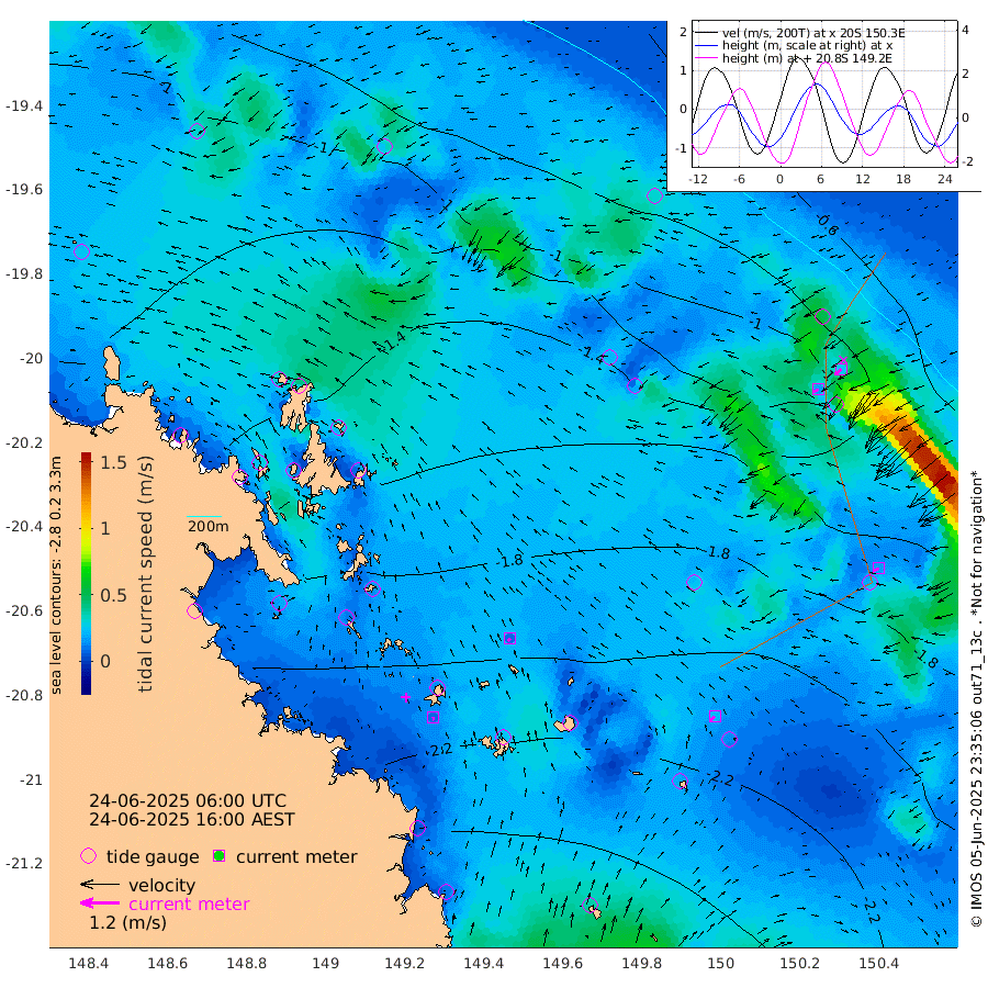 9cm/s 176T +10cm/s rms + 2cm/s 5T. Brampton I 18m 9cm/s -135T +9cm/s rms + 6cm/s 66T. Wigton I 38m 22cm/s -140T +7cm/s rms + 8cm/s 141T. Tern I 47m 25cm/s -135T +7cm/s rms + 12cm/s 54T. N Bugatti Rf 64m 17cm/s -116T +3cm/s rms + 13cm/s 178T. W Bugatti Rf 70m 16cm/s -114T +3cm/s rms + 3cm/s -130T. Creal Rf 69m -118cm Holbourne I -223cm Tern I -118cm Bugatti Rf -158cm Creal Rf -88cm White Tip I -107cm Wallaby Reef -92cm Kennedy Reef -76cm Unnamed Reef No. 2 -148cm Tideway Reef -137cm Hayman Island -184cm Square Reef -149cm Double Bay -169cm Molle Island -170cm Cid Harbour -141cm Hook Island -155cm Border Island -169cm Haslewood Island -168cm Shute Harbour -197cm Thomas Island -203cm Credlin Reef -224cm East Repulse Island -215cm Blacksmith Island -228cm Laguna Quays -225cm Carlisle Island (Off) -248cm St. Bees Island -222cm Scawfell Island -230cm Penrith Island -252cm Mackay Outer Harbour -266cm Hay Point -259cm Prudhoe Island