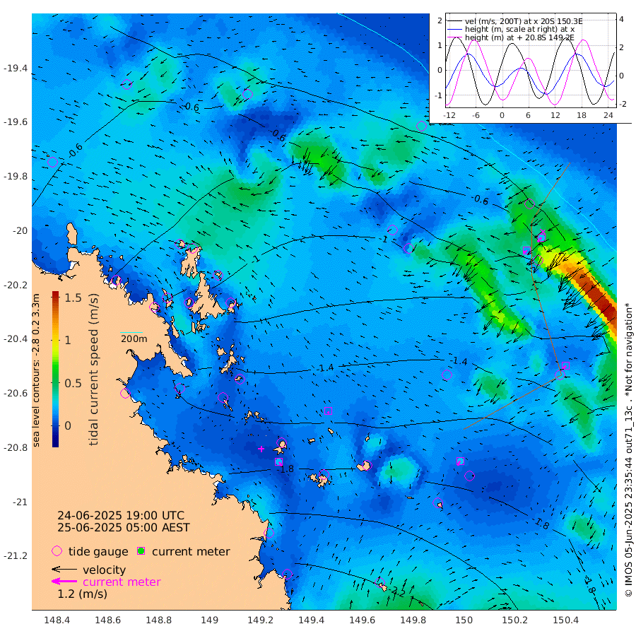 23cm/s 147T +10cm/s rms + 2cm/s 5T. Brampton I 18m 11cm/s -174T +9cm/s rms + 6cm/s 66T. Wigton I 38m 24cm/s -155T +7cm/s rms + 8cm/s 141T. Tern I 47m 27cm/s -142T +7cm/s rms + 12cm/s 54T. N Bugatti Rf 64m 17cm/s -124T +3cm/s rms + 13cm/s 178T. W Bugatti Rf 70m 18cm/s -133T +3cm/s rms + 3cm/s -130T. Creal Rf 69m -69cm Holbourne I -189cm Tern I -83cm Bugatti Rf -126cm Creal Rf -55cm White Tip I -55cm Wallaby Reef -43cm Kennedy Reef -41cm Unnamed Reef No. 2 -103cm Tideway Reef -95cm Hayman Island -134cm Square Reef -98cm Double Bay -108cm Molle Island -121cm Cid Harbour -98cm Hook Island -110cm Border Island -122cm Haslewood Island -122cm Shute Harbour -160cm Thomas Island -166cm Credlin Reef -183cm East Repulse Island -168cm Blacksmith Island -186cm Laguna Quays -182cm Carlisle Island (Off) -203cm St. Bees Island -184cm Scawfell Island -194cm Penrith Island -221cm Mackay Outer Harbour -236cm Hay Point -233cm Prudhoe Island